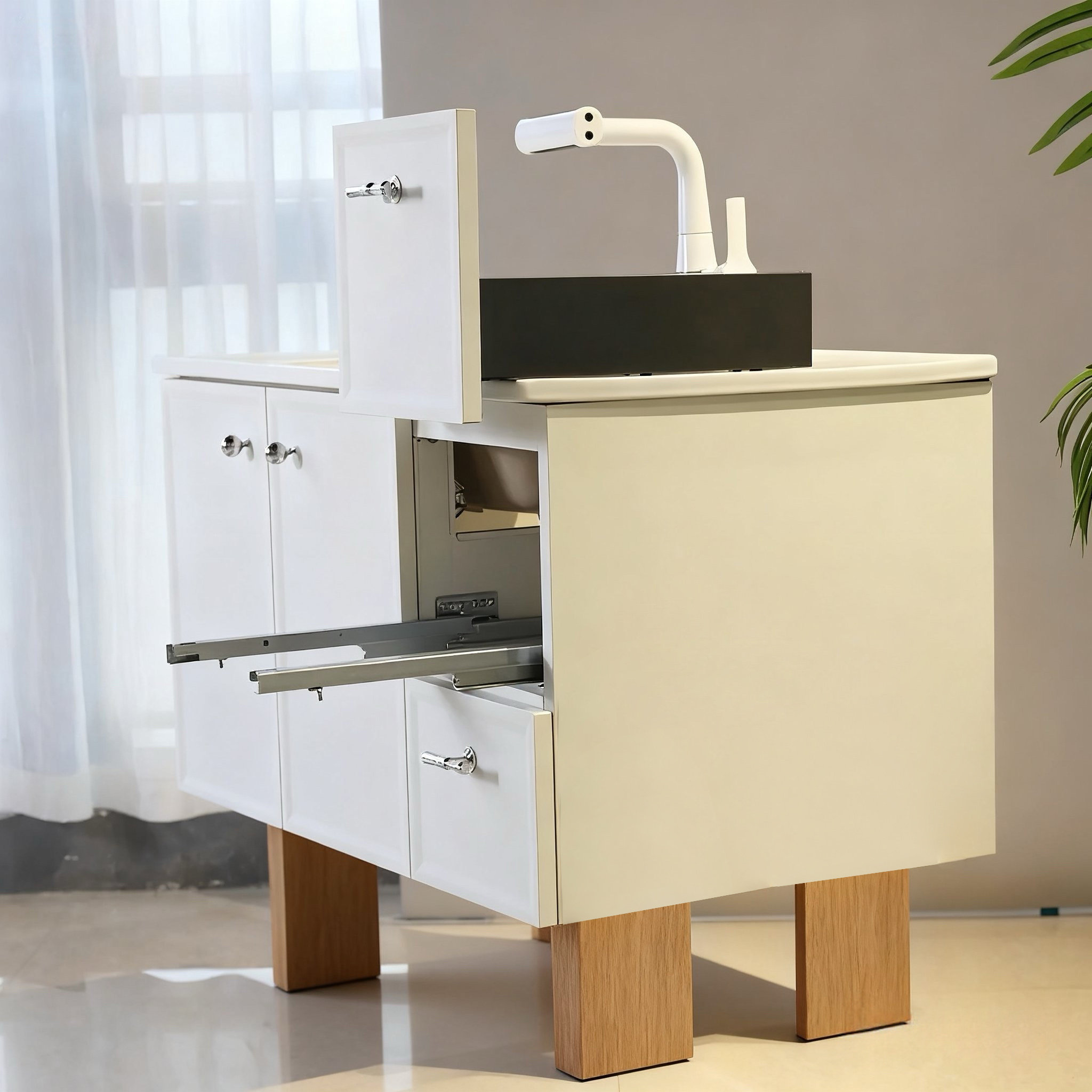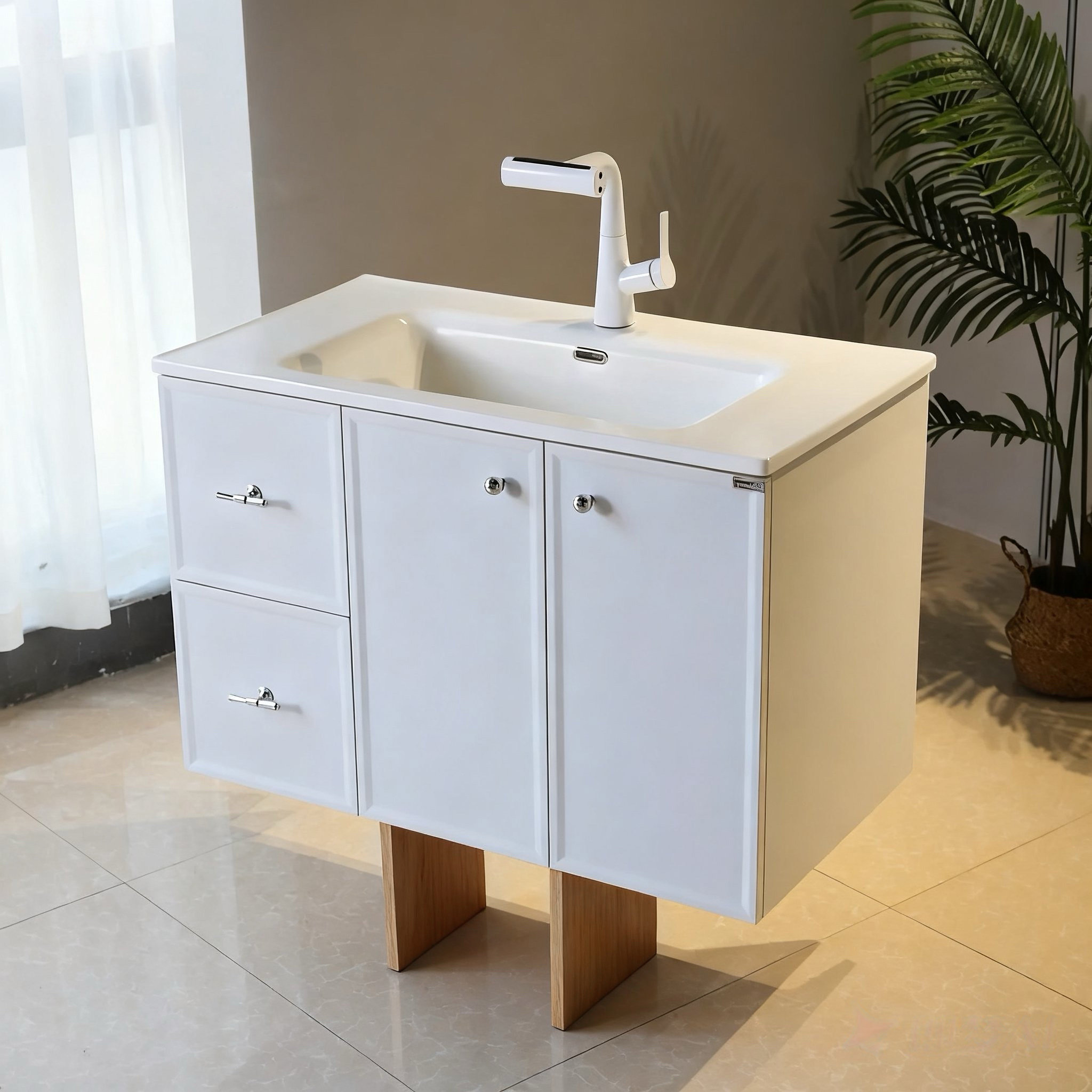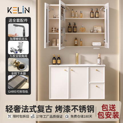 不锈钢浴室柜陶瓷一体盆法式奶油卫生间洗手盆佛山卫生间镜柜新款