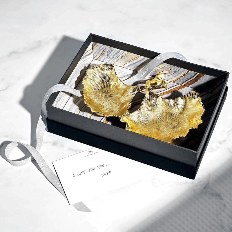 Michael Aram金色银杏杂物小盘水果盘金属耐用创意小吃盘生日礼物