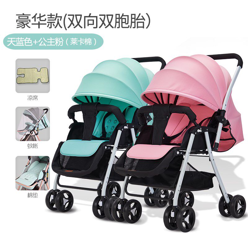 茵派双胞胎婴儿推车轻便折叠可坐可躺可拆分二胎双人大小孩手推车
