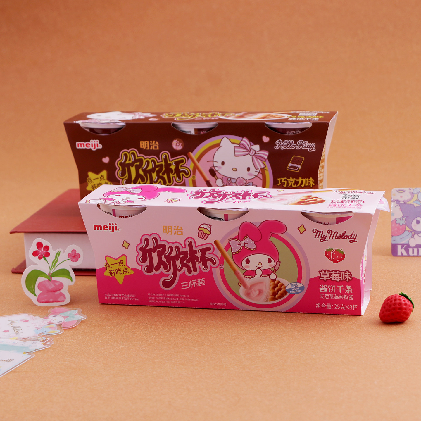 Meiji明治欣欣杯kt猫巧克力味酱饼干棒三丽鸥凯蒂猫零食小零食