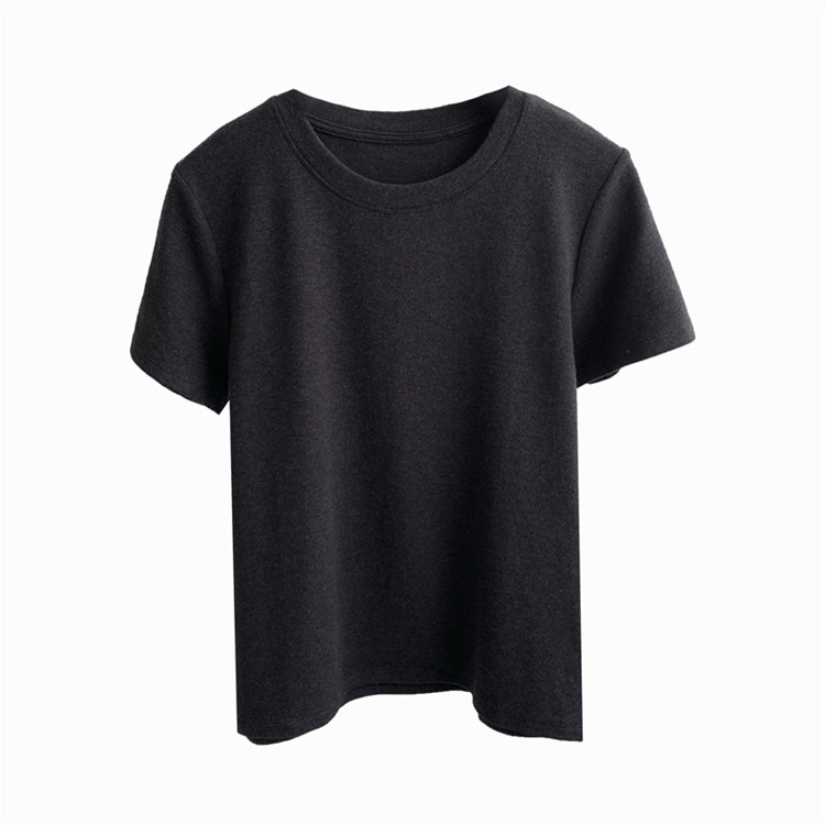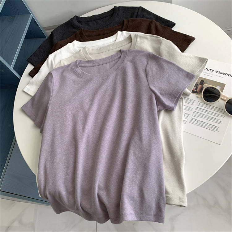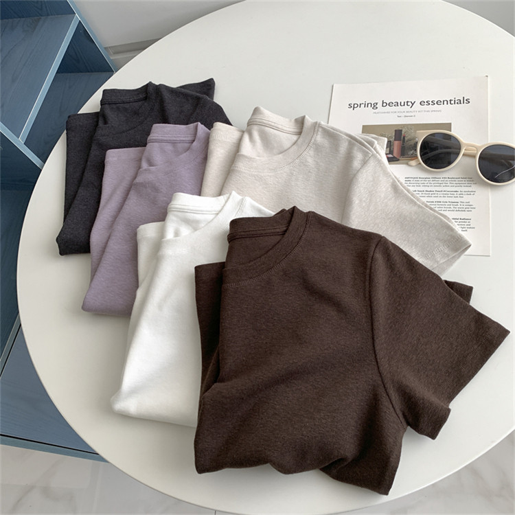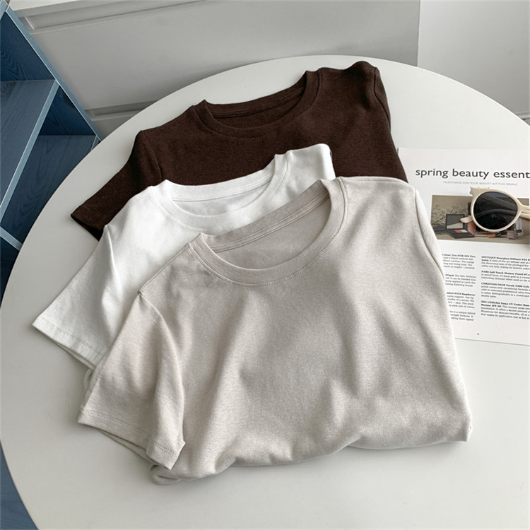 夏季简约纯色羊绒感竹节棉短袖T恤休闲透气凉快正肩显瘦百搭上衣