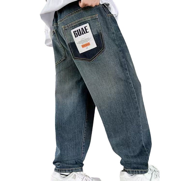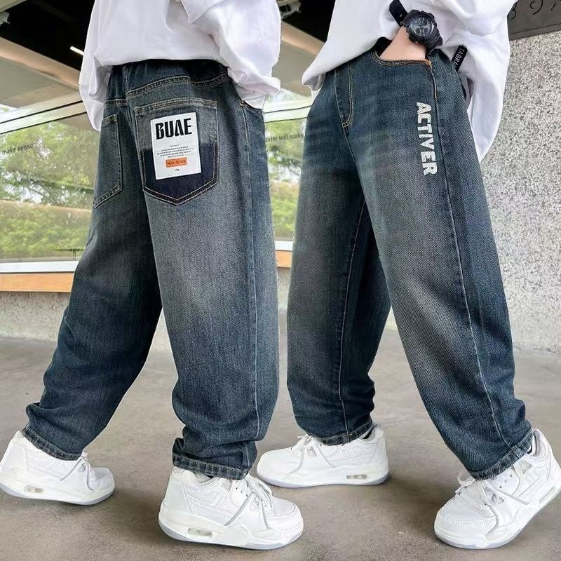 春秋男童裤子新款中大童长裤男孩儿童装宽松牛仔裤潮宽松直筒裤子