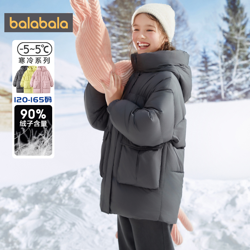 巴拉巴拉女童羽绒服中大童宝宝中长款外套冬装新款童装儿童加厚潮