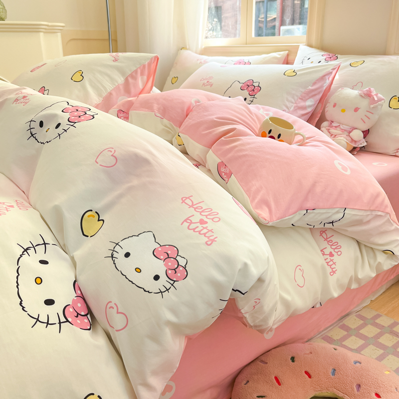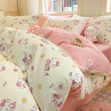 纯棉女孩床品四件套全棉helloKitty卡通被套儿童床上三件套凯蒂猫