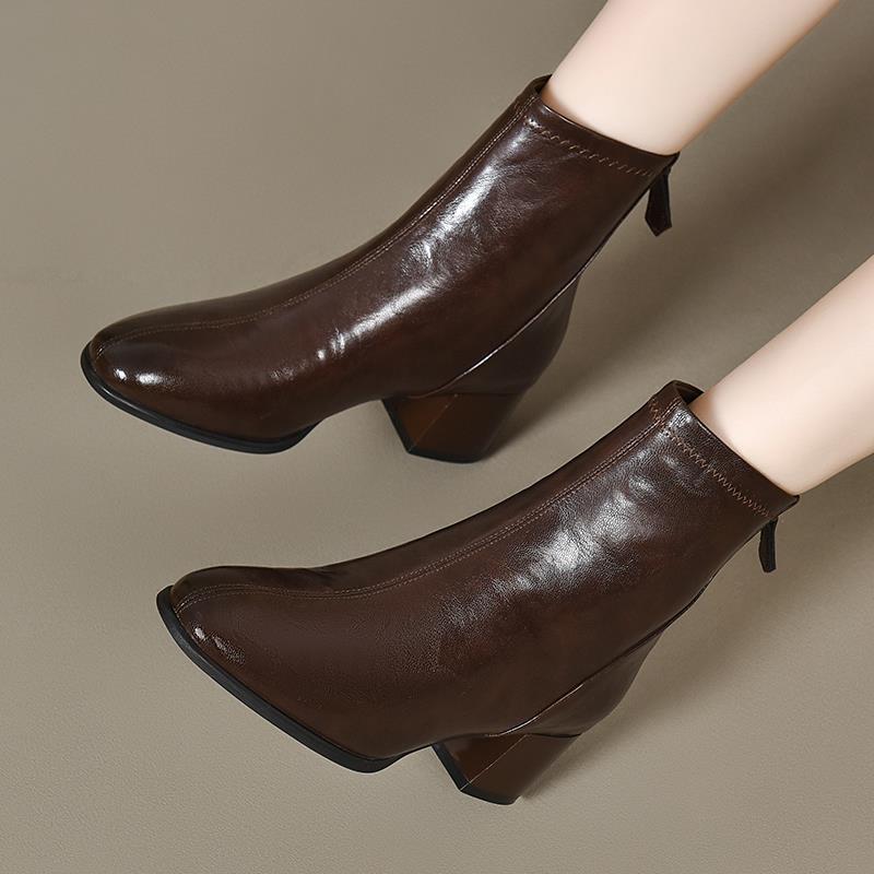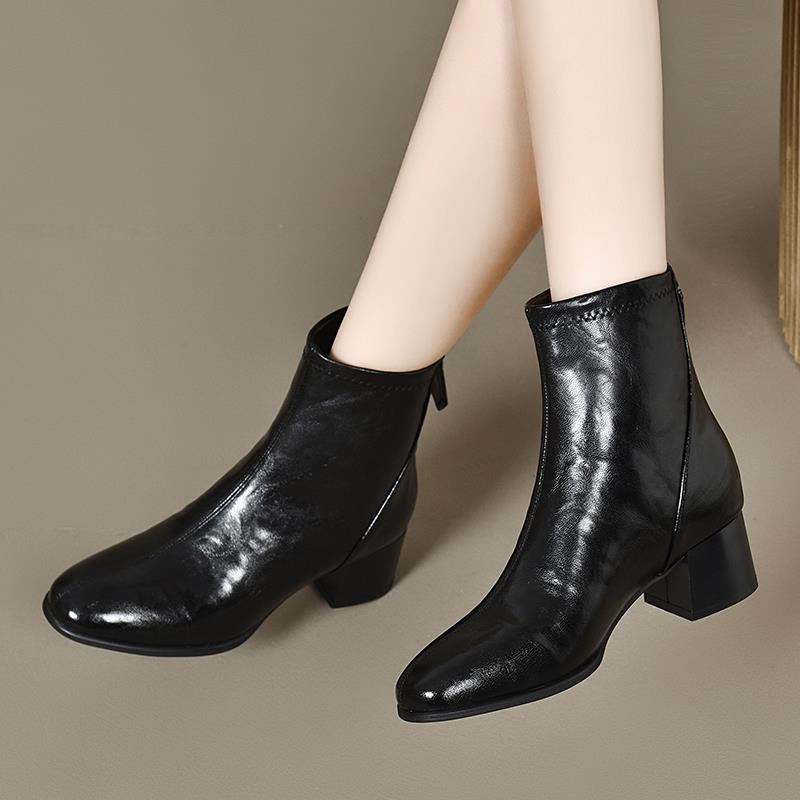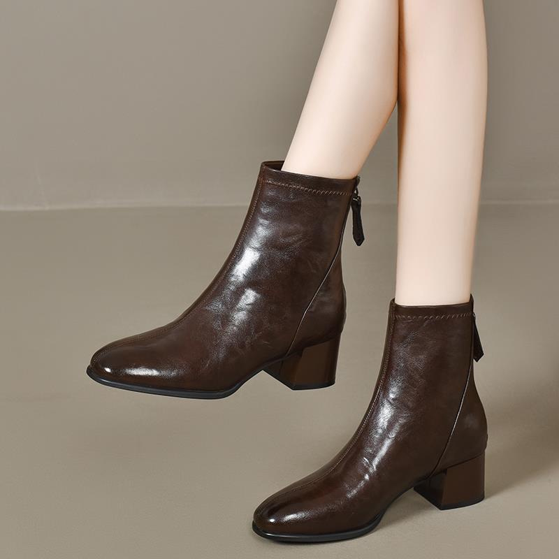 秋冬粗跟小短靴女2025新款季圆头中跟马丁靴高跟秋单靴1007u