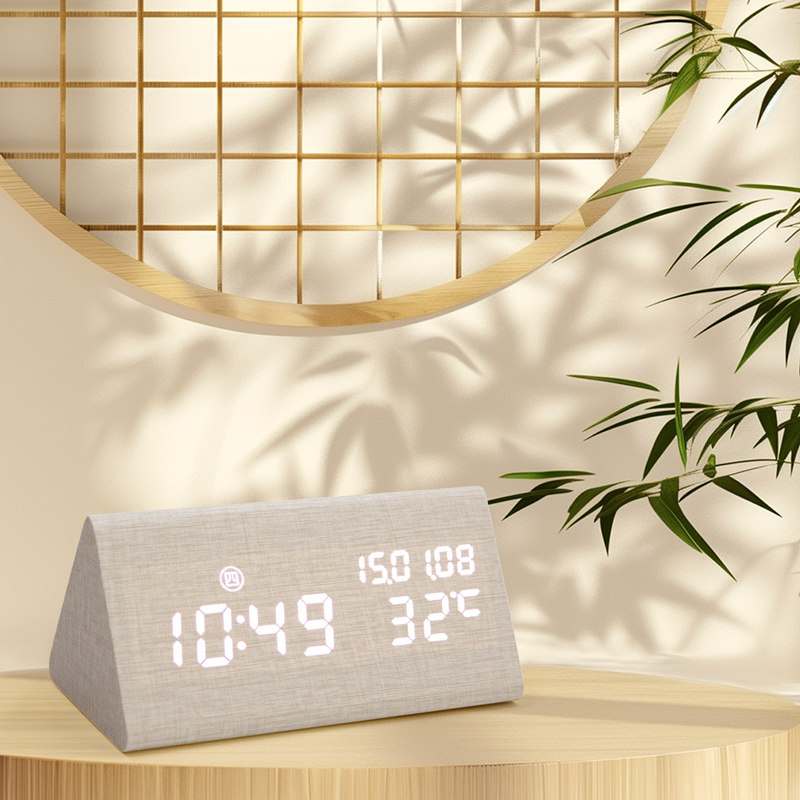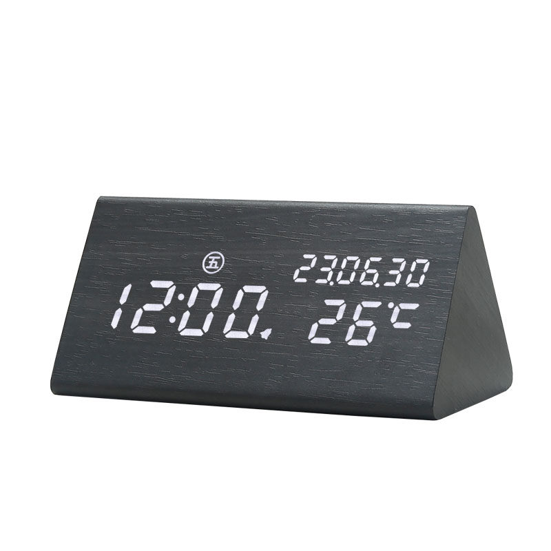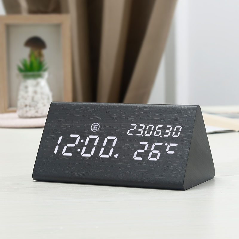 复古木质闹钟 LED静音电子钟创意床头钟客厅摆件夜光桌面时钟闹表