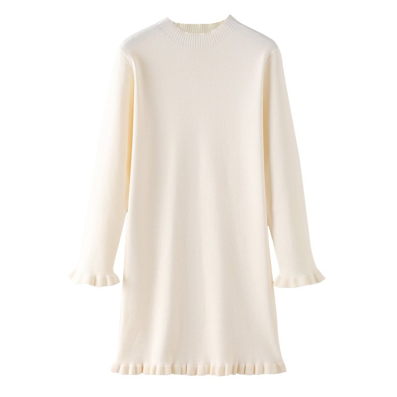 白色连衣裙女半高领木耳边秋冬打底裙中长款针织裙子内搭毛衣裙子