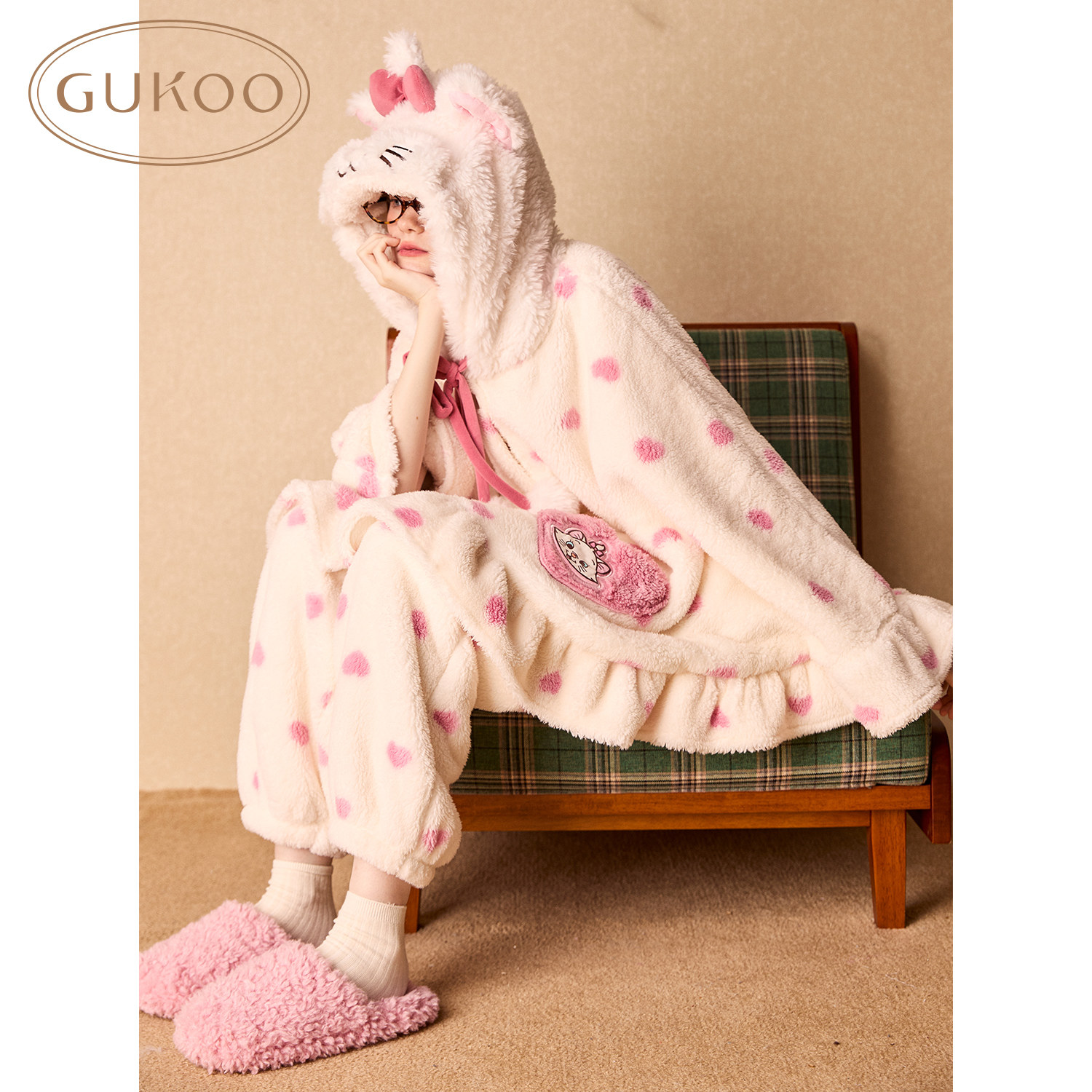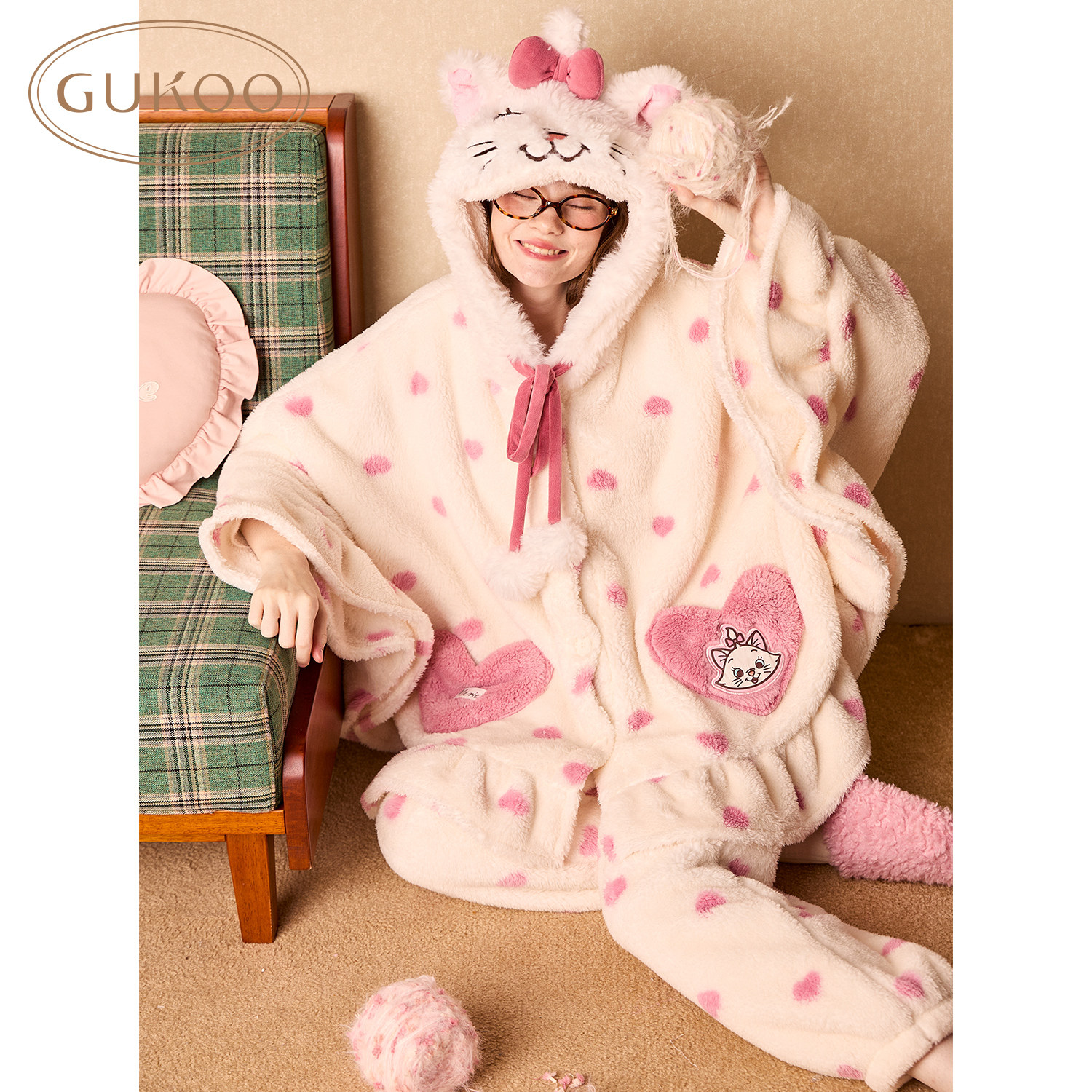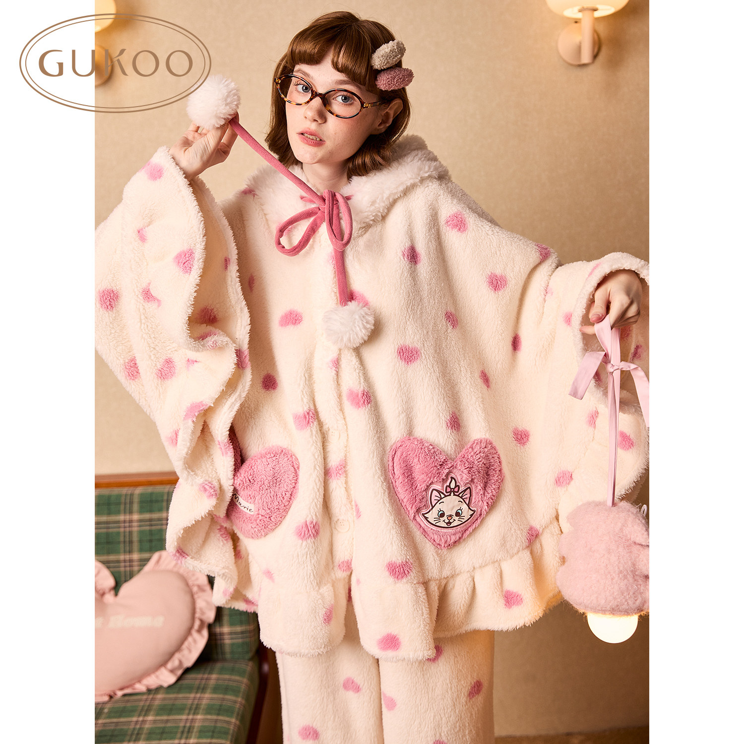 Gukoo/果壳睡衣女冬季珊瑚绒保暖新款迪士尼联名可爱家居服套装D