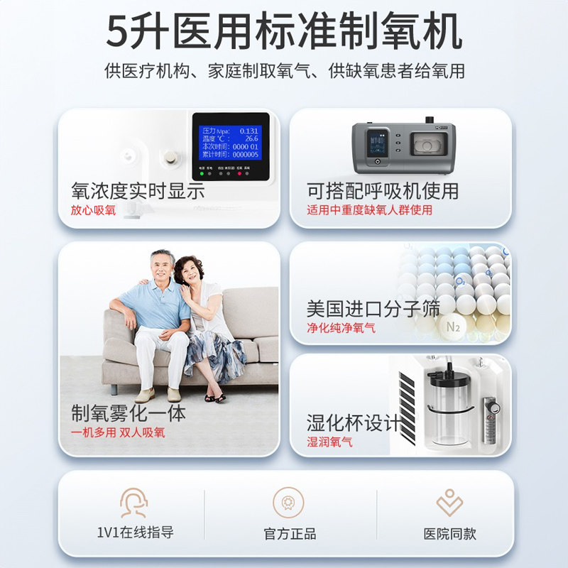 麦德哈特医用制氧机5升大流量医用级96%氧浓度老人家用吸氧机