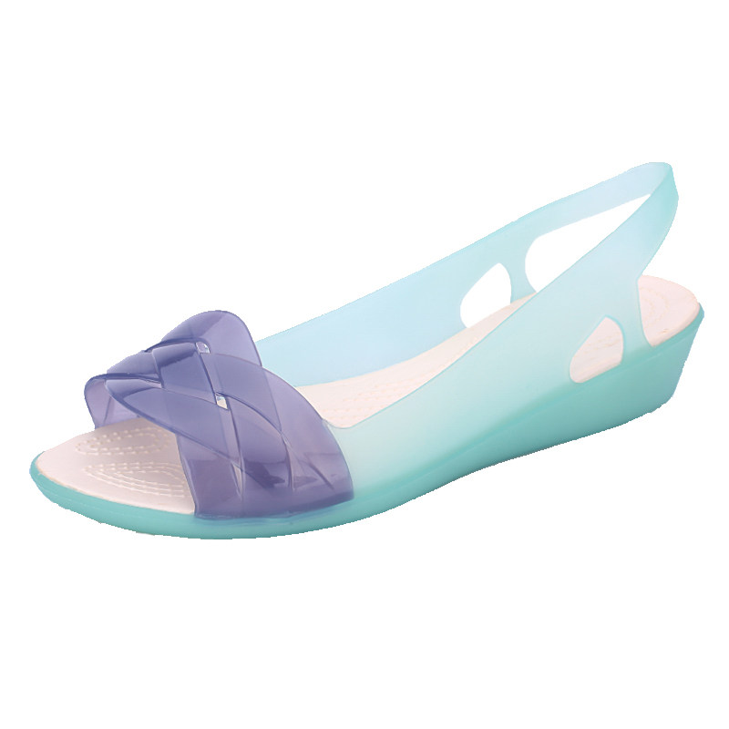 塑料凉鞋女2021新款坡跟中老年鱼嘴F妈妈沙滩鞋夏季软底水晶果冻