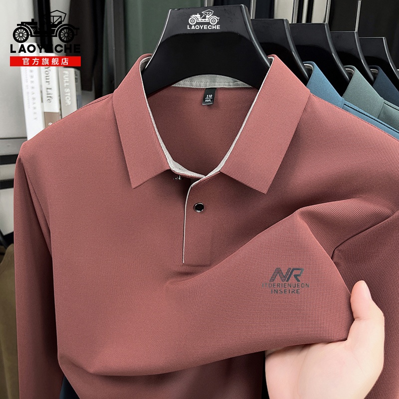老爷车长袖t恤男士2025年秋季新款中年商务休闲翻领打底Polo衫男