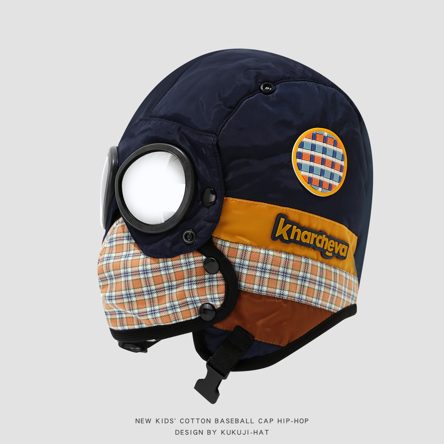 儿童冬季保暖防风雷锋帽带眼镜口罩男童加绒加厚护耳帽小孩套