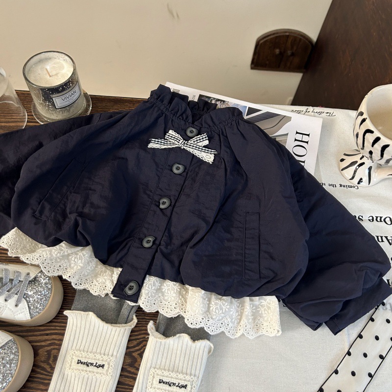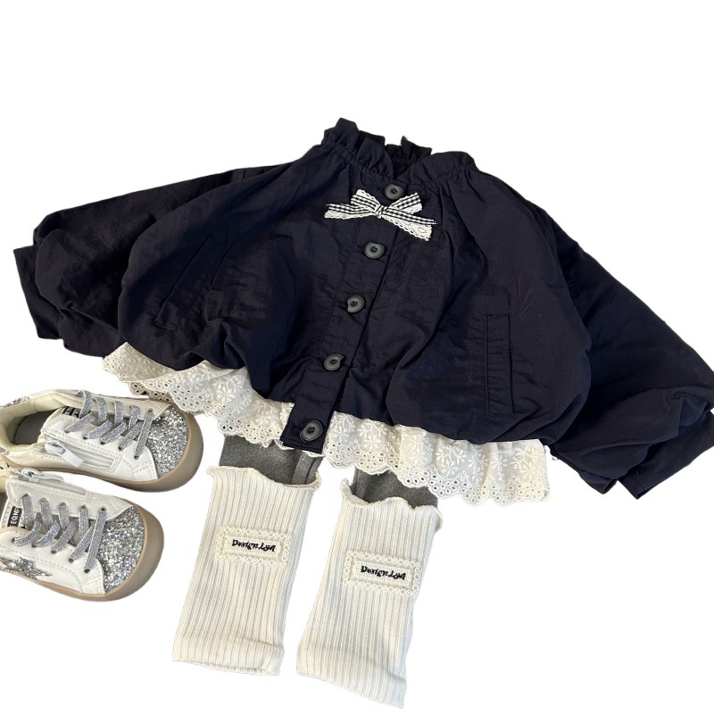 韩版童装2025新款秋季女童灯笼花苞风衣外套堆堆袜打底裤两件套