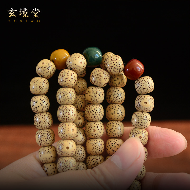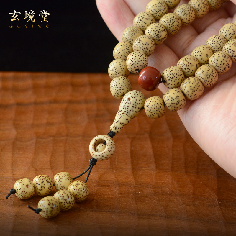 海南原生态星月菩提籽108颗手持圆桶珠手串阿拉善男女款黄籽9/10
