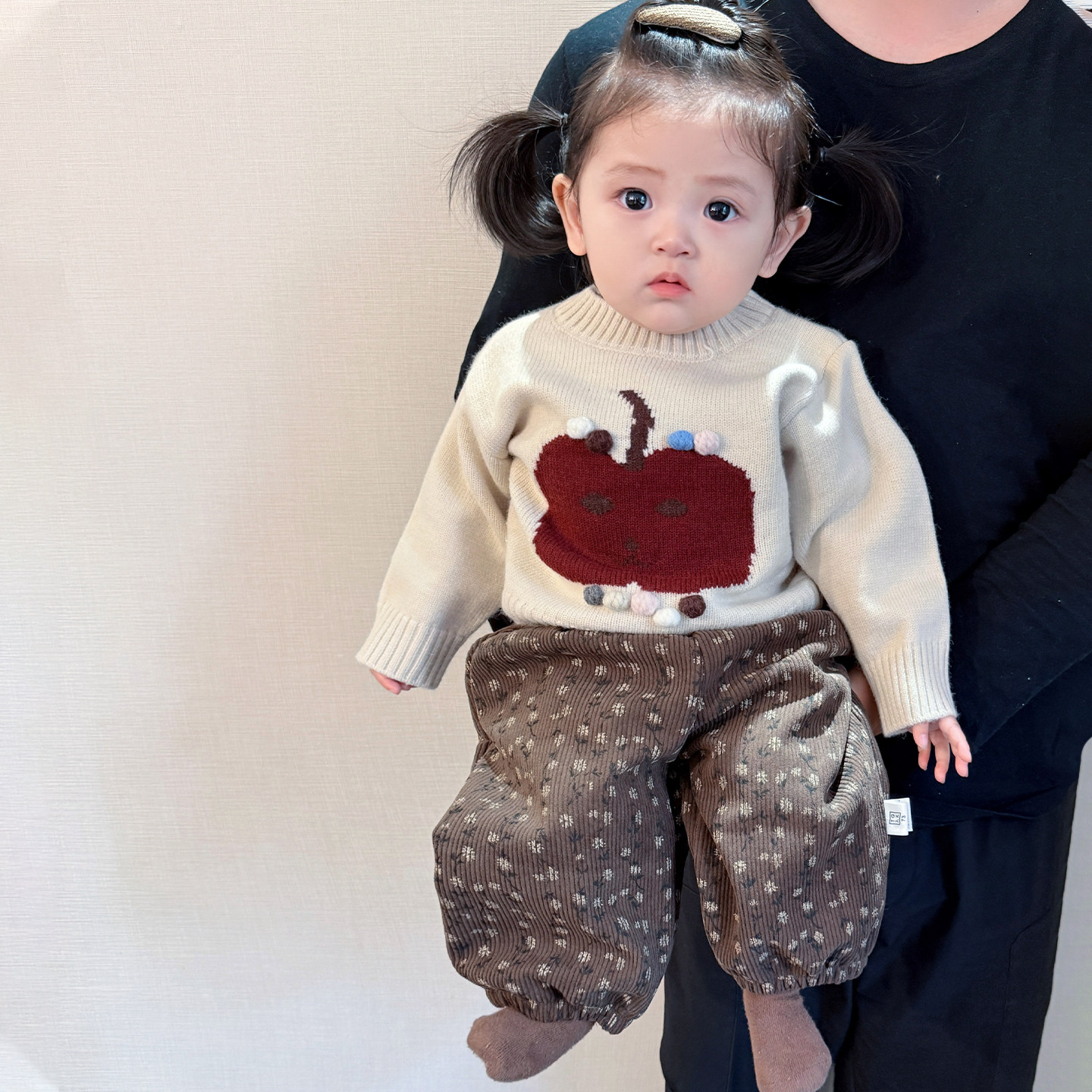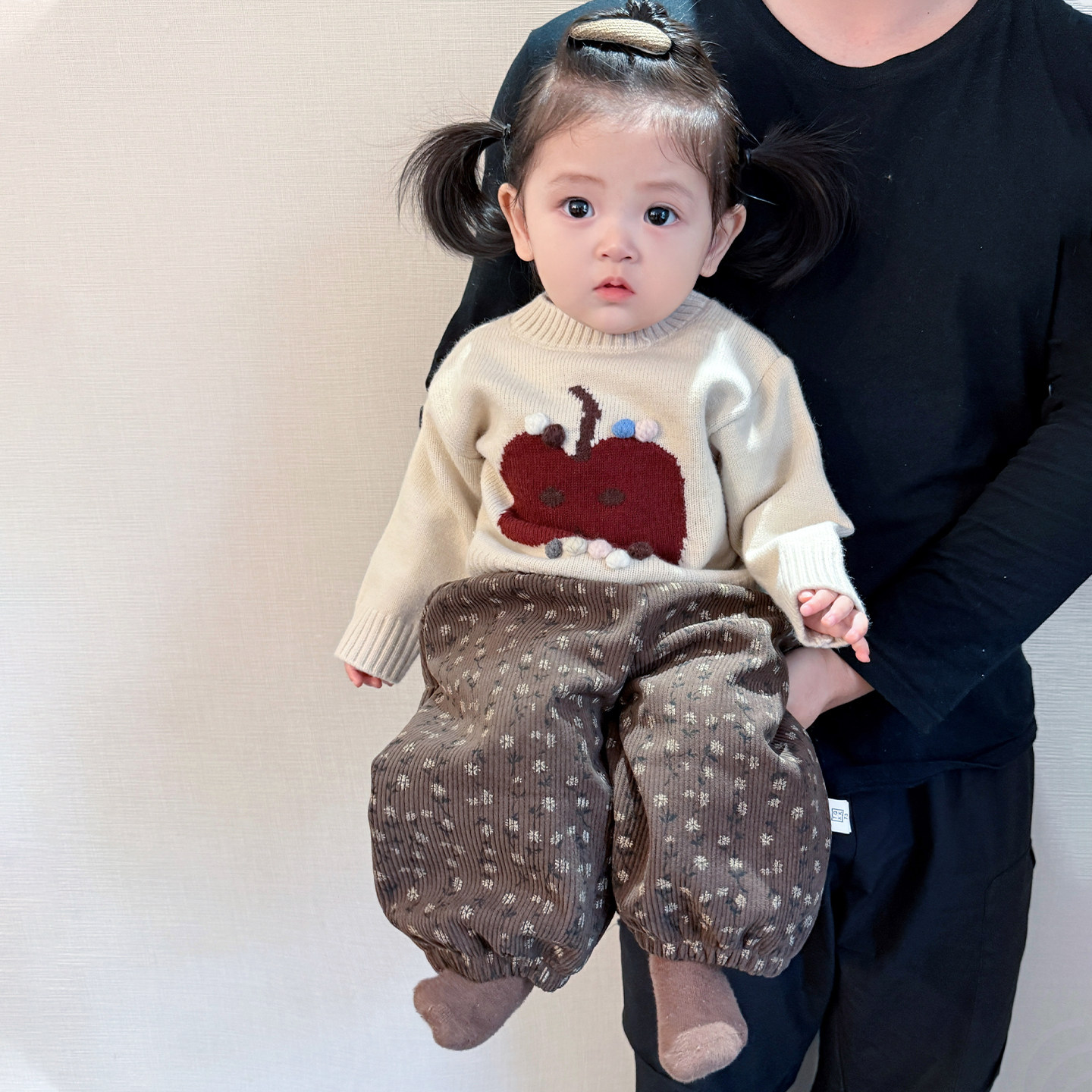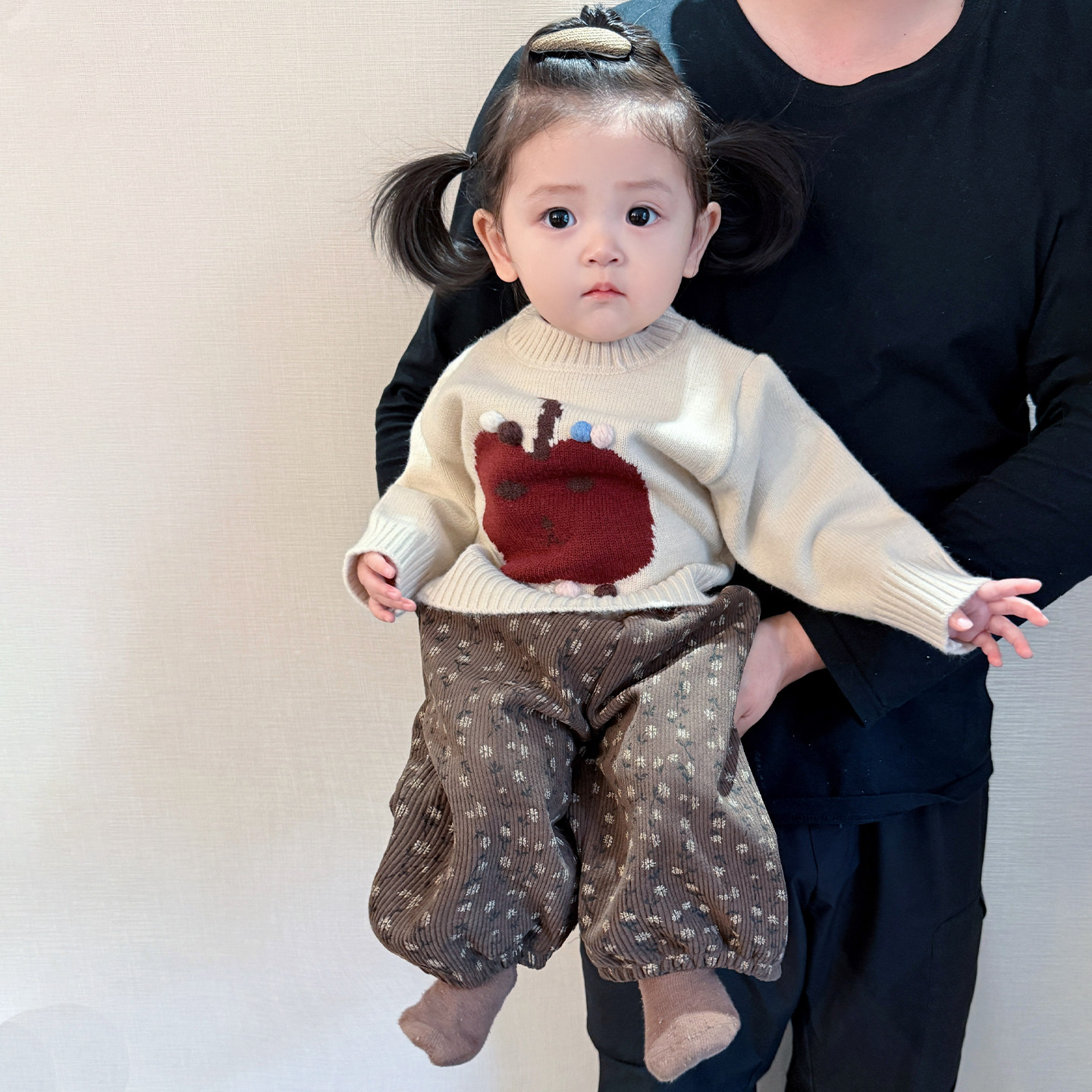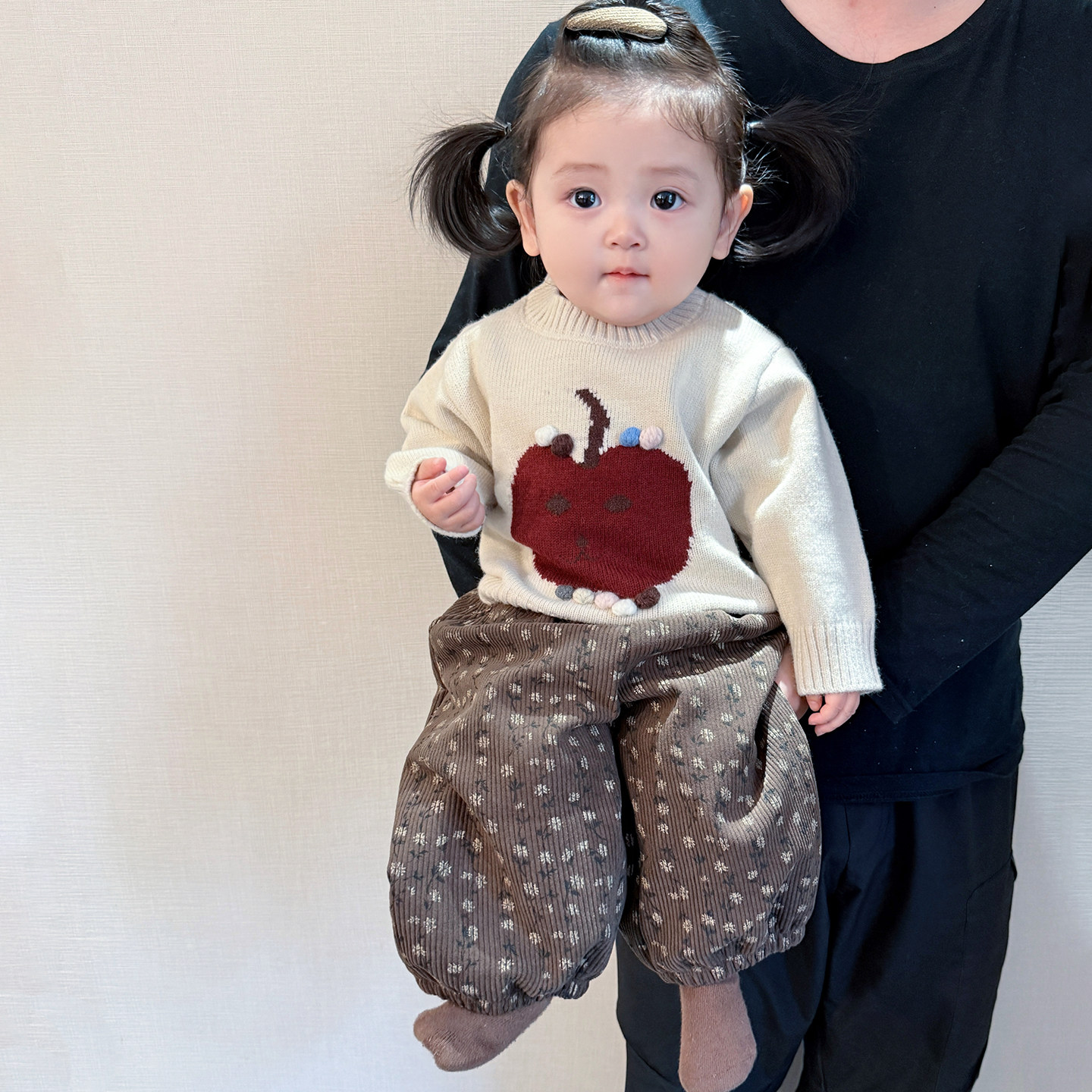 女宝宝冬季加厚针织衫套装女童韩版休闲套头毛衣婴儿保暖加绒裤子
