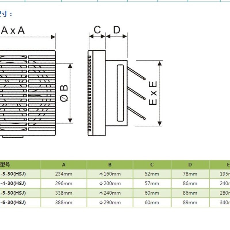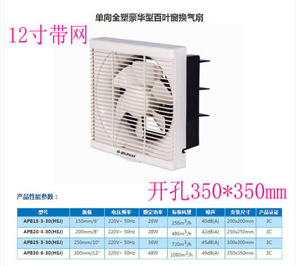 金羚12寸带前网百叶窗换气扇(全塑框体)APB30-6-30(HSJ)
