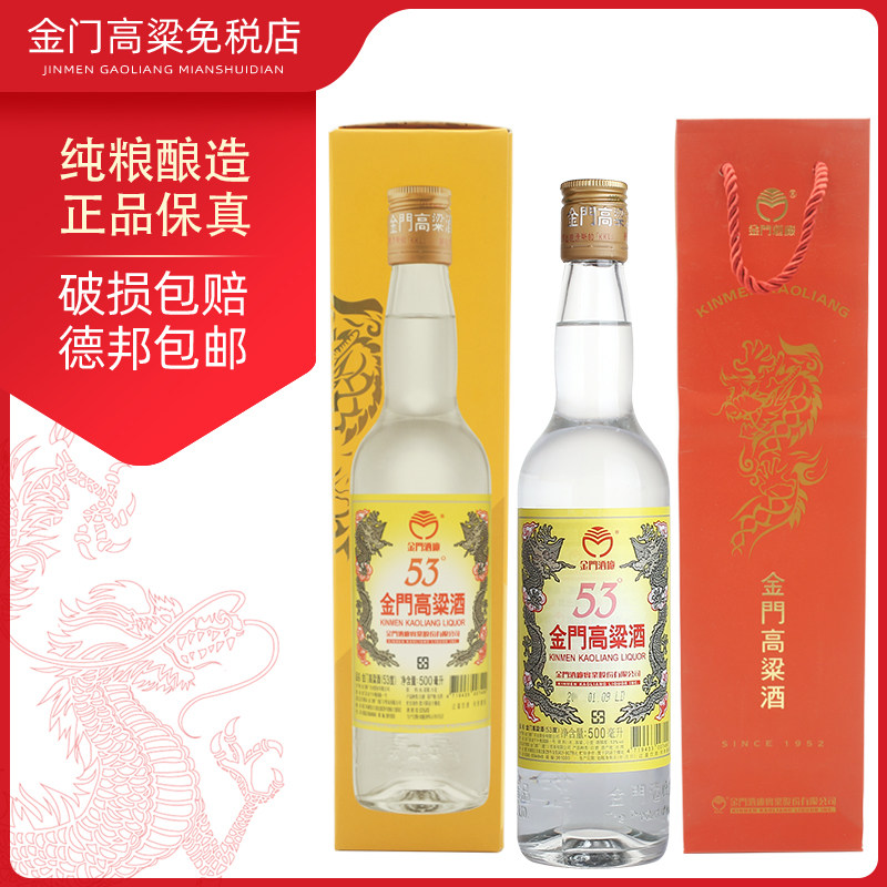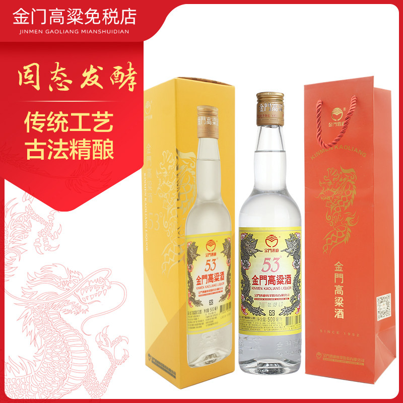 金门高粱酒黄金龙53度500ml纯粮食固态发酵高度白酒礼盒装