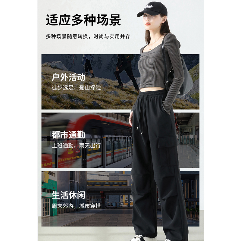 KV真维斯三防工装裤女秋新款宽松休闲户外运动登山裤阔腿冲锋裤