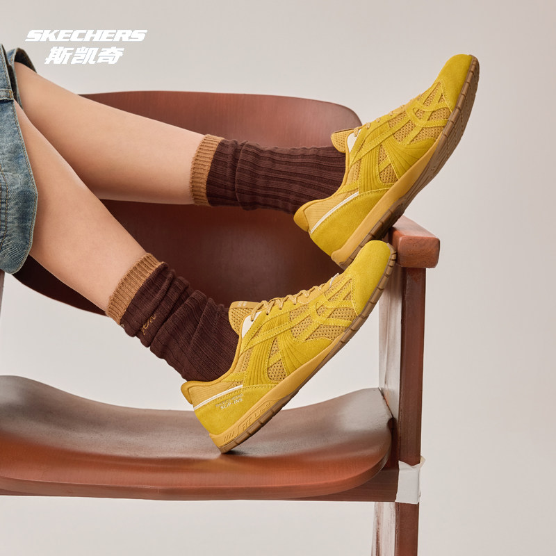 Skechers斯凯奇女鞋复古闪穿德训鞋透气薄底休闲运动板鞋104783