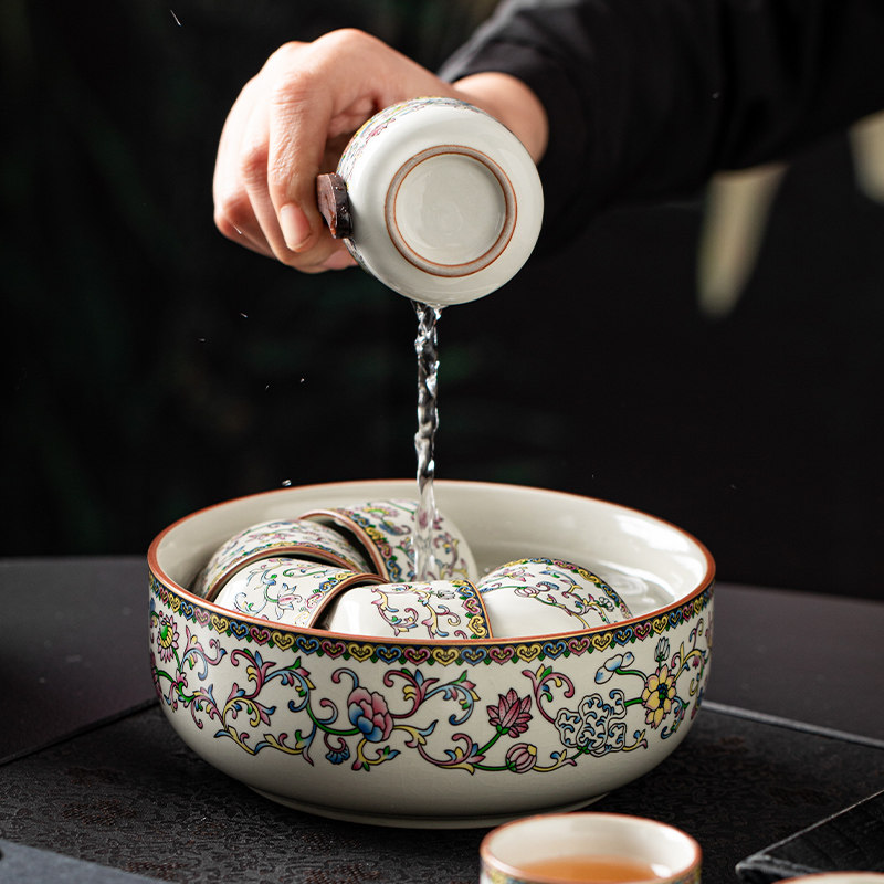汝窑茶洗家用茶洗缸开片可养水盂杯洗大号建水缸茶杯笔洗茶具配件