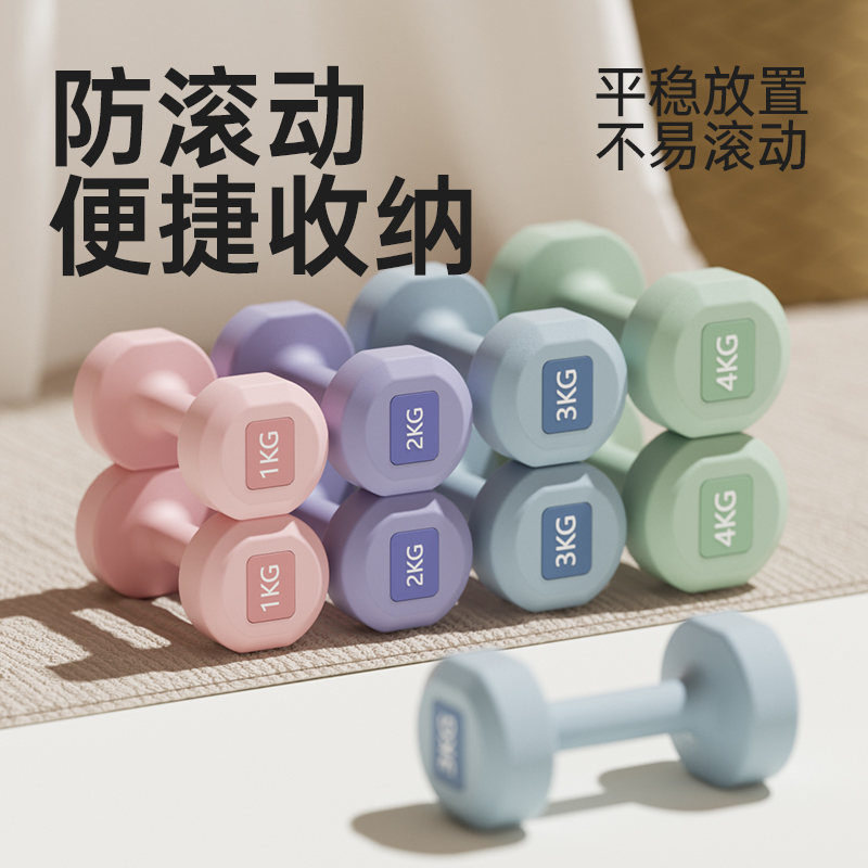 哑铃女士家用健身器材收手臂练翘臀神器包胶小哑铃男士力量训练