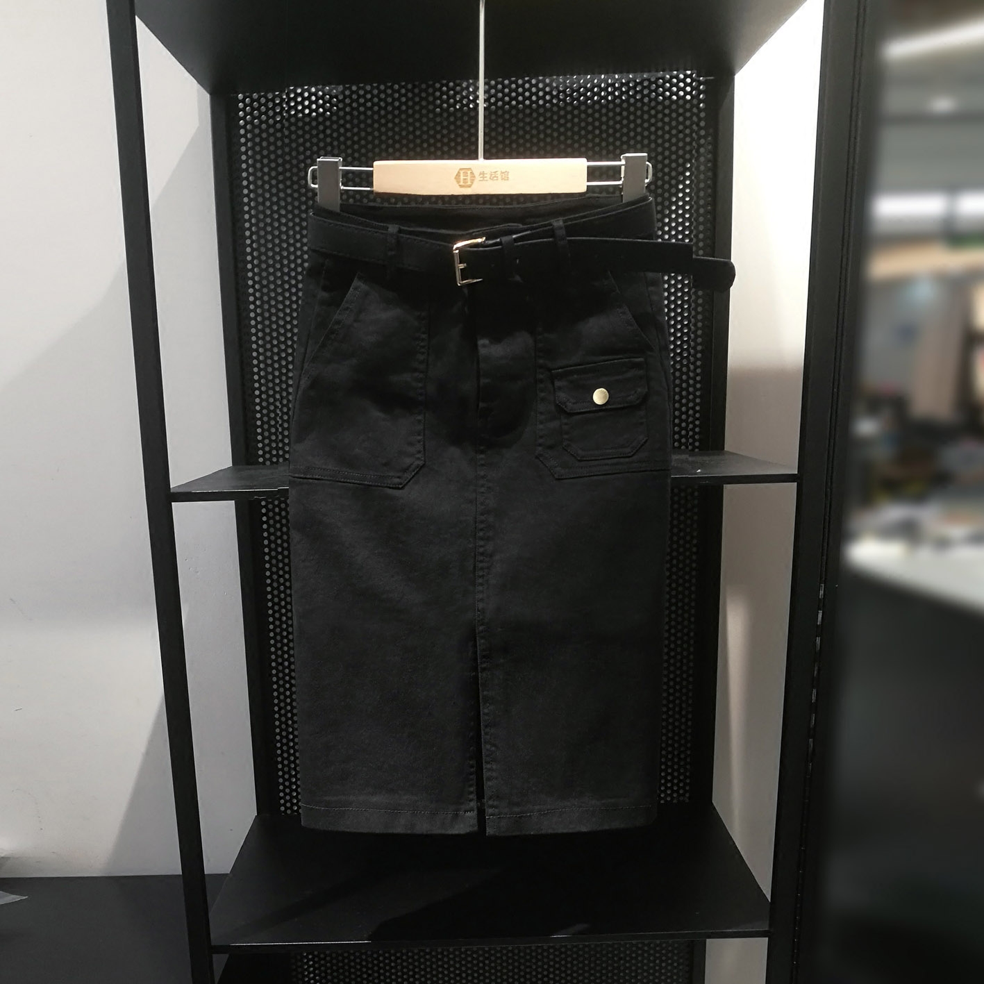 2023春夏韩版女装红色高腰牛仔裙修身显瘦中长款一步半身包臀裙子