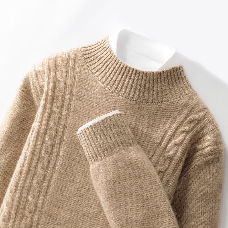 京绒羊2025秋冬半高领100%纯羊毛衫男士宽松显瘦气质百搭加厚毛衣