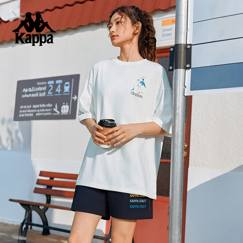Kappa卡帕短裤2025年春夏女运动短裤休闲五分裤阔腿印花短裤