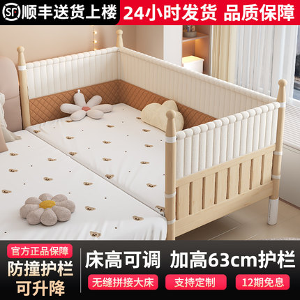 实木拼接床婴儿宝宝小床高护栏可升降儿童拼床定制加宽大床边神器