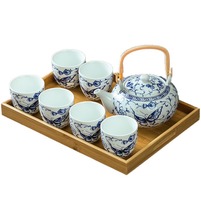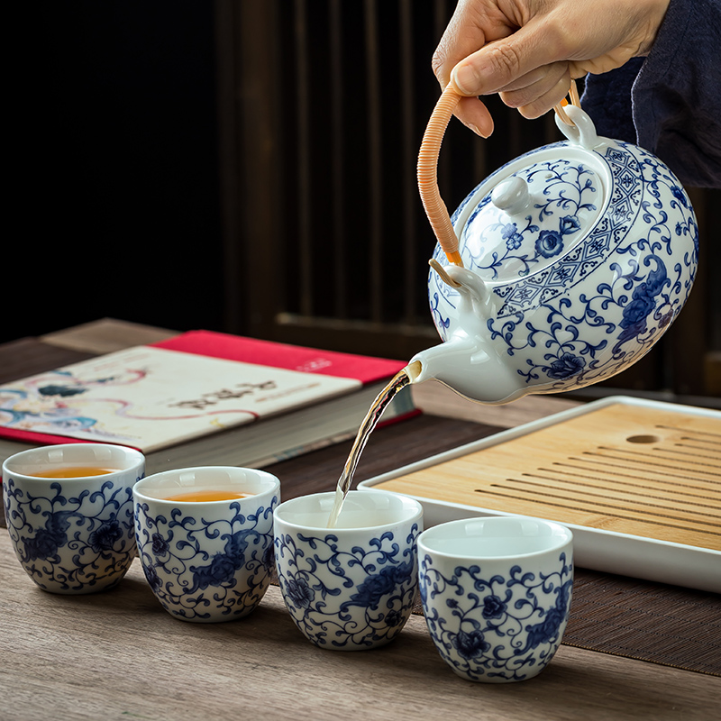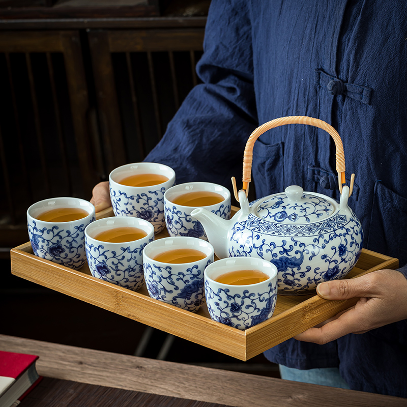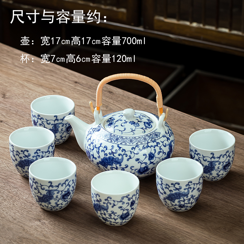 功夫茶具套装青花瓷提梁茶壶茶杯整套家用1壶6杯家用中式水壶水杯