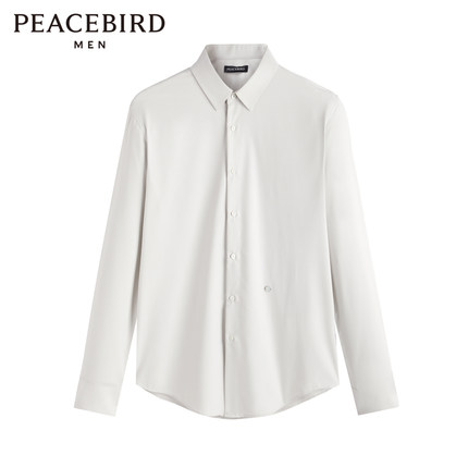 太平鸟男装 纯色商务通勤衬衣秋季修身休闲白色翻领长袖衬衫男