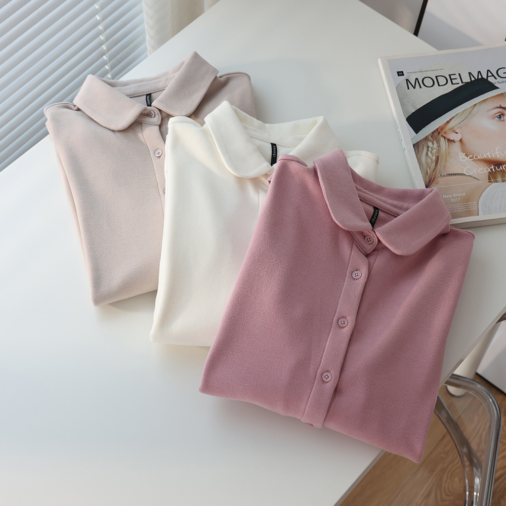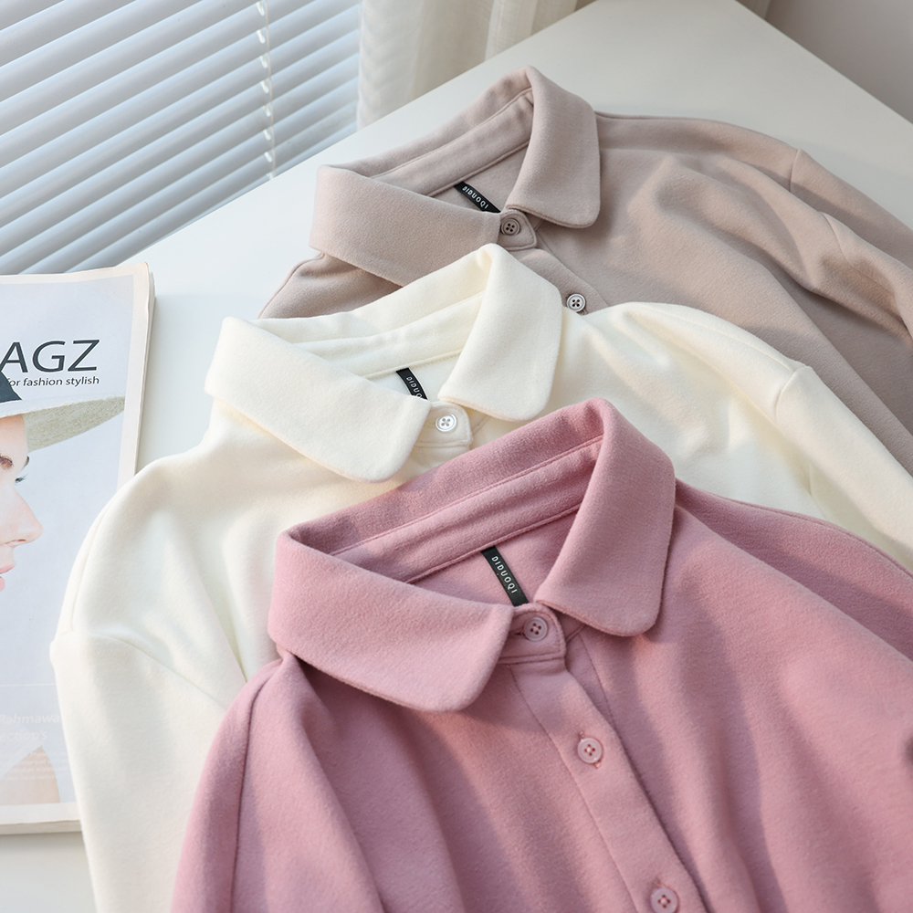 磨毛柔肤加厚德绒加绒衬衫女长袖2025年秋冬娃娃领大码打底衬衣