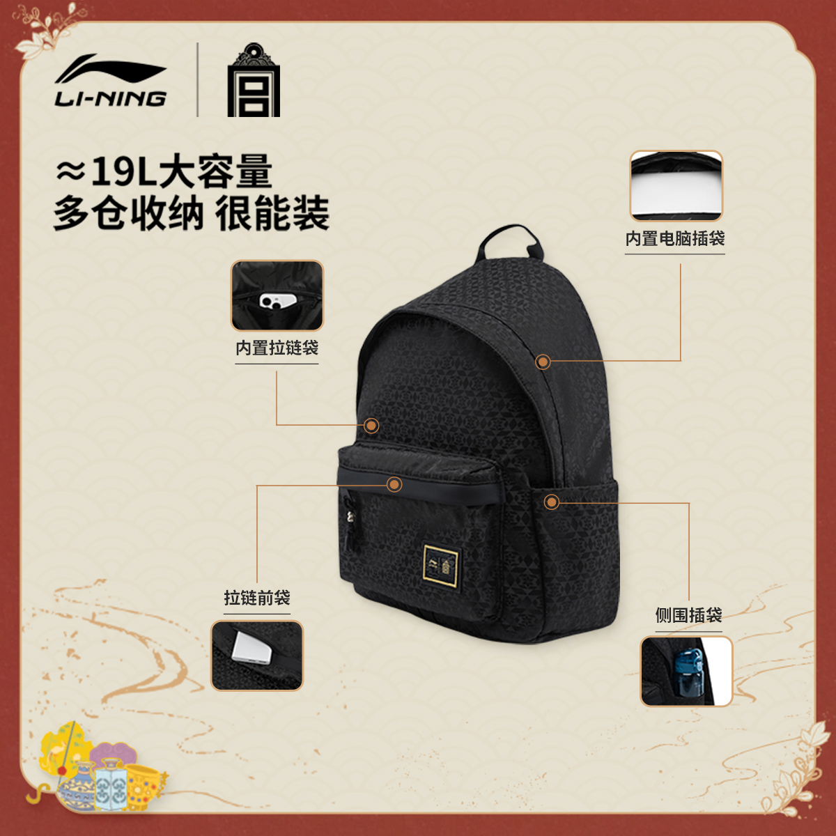 李宁中国文化系列故宫联名双肩包男女2025新款学生背包环保运动包