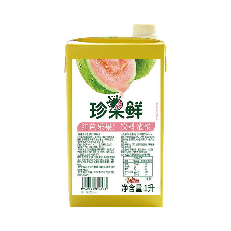 德馨珍选 珍果鲜红番石榴汁 浓缩果汁浓浆1L红芭乐汁商用果汁原料