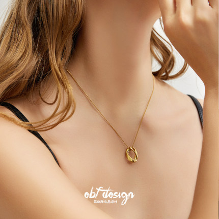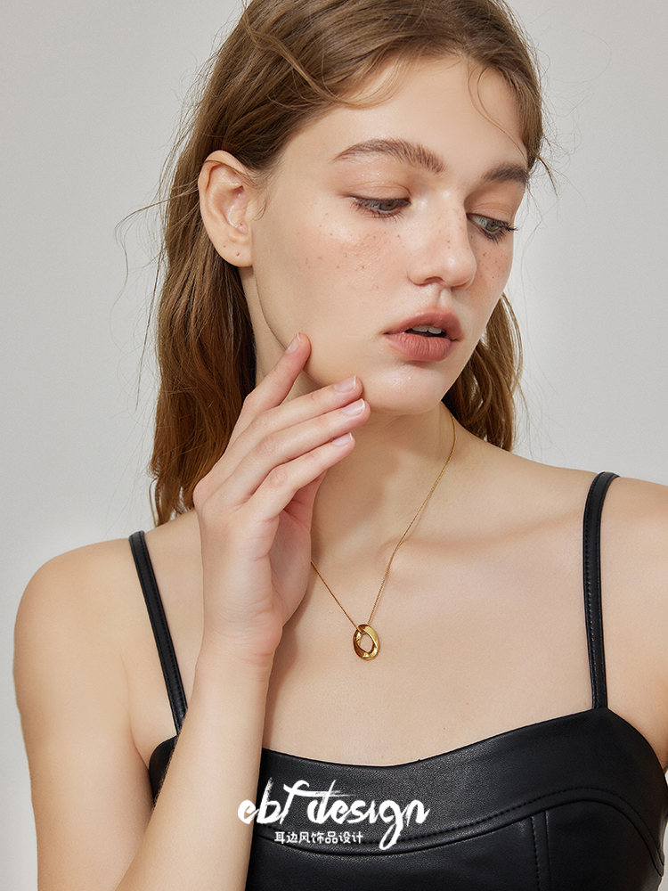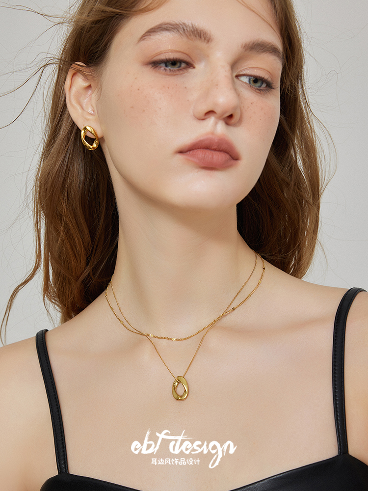 EBFWIND环形公路 不规则椭圆可叠戴基础款几何项链简约百搭毛衣链