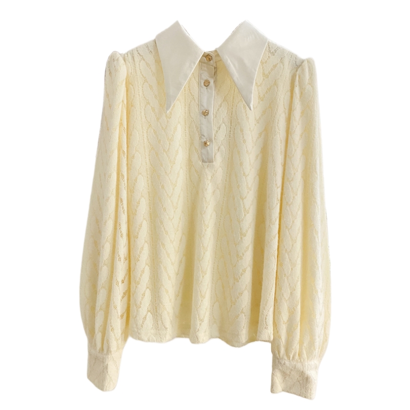 法式别致翻领蕾丝长袖衬衫女秋冬加绒加厚高级感内搭打底小衫上衣