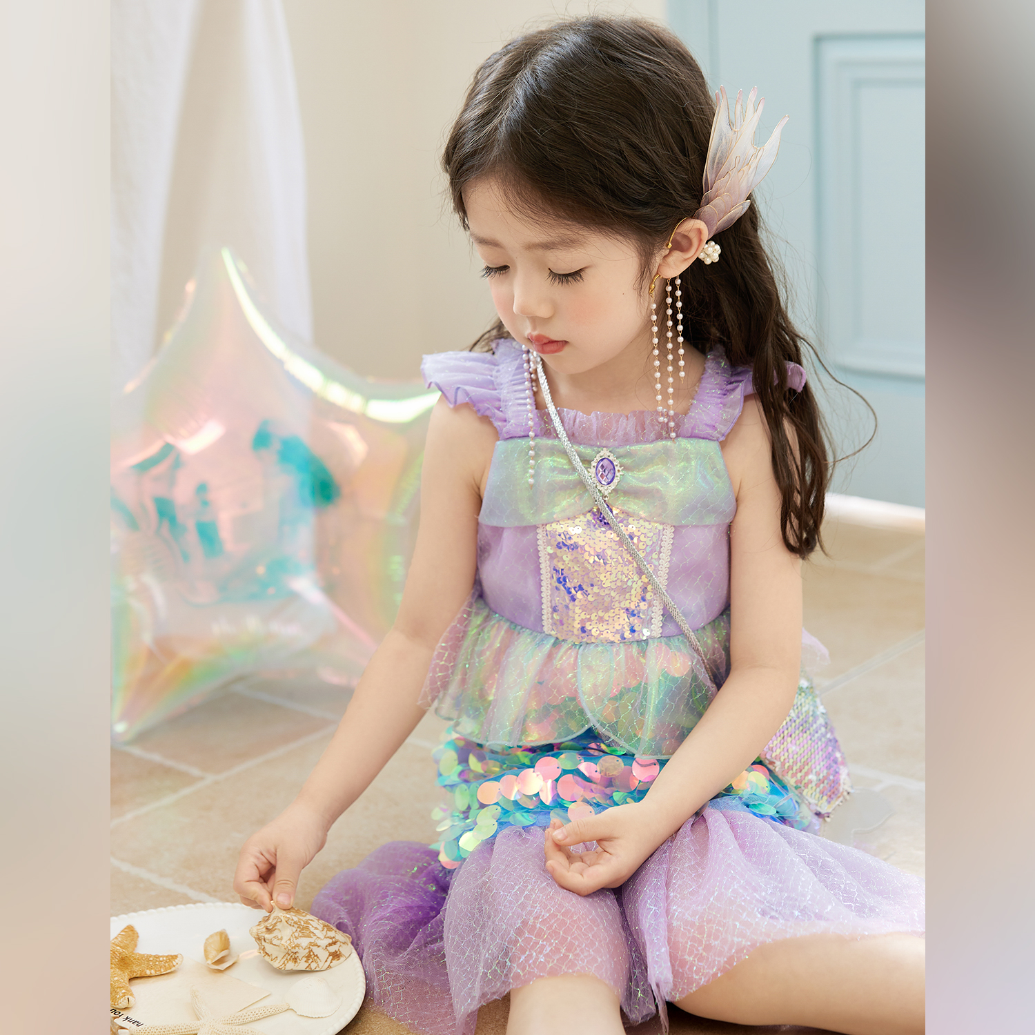小O宝童装宝宝海边沙滩美人鱼公主裙夏2025新女童吊带度假连衣裙