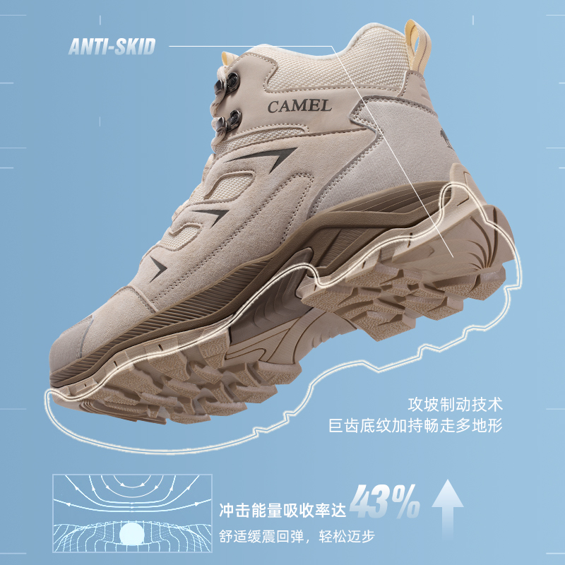 骆驼户外休闲登山鞋高帮男鞋冬季新款加绒保暖棉鞋防滑耐磨徒步鞋