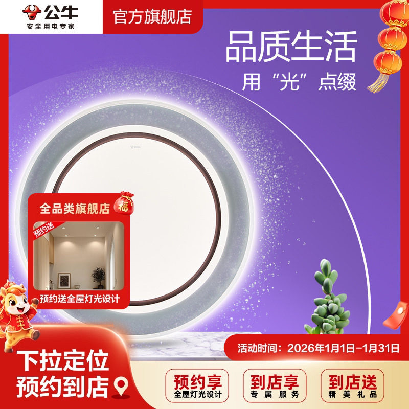 【门店同款】公牛LED圆形卧室吸顶灯书房吸顶灯护眼三色变光