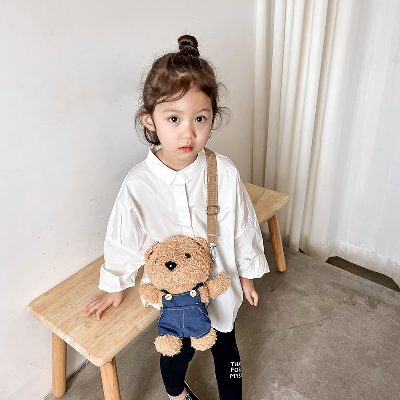 小女孩毛绒小熊斜挎包