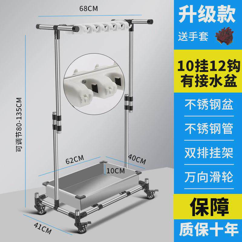 xNE不锈钢可移动拖把挂架挂钩落地式放扫把墩布置物架子收纳清洁