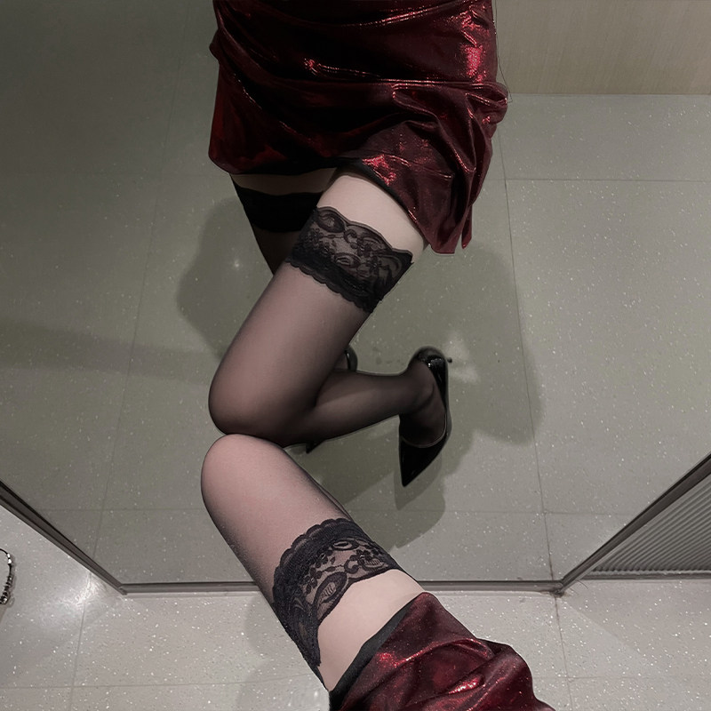 黑丝袜蕾丝边半截过膝袜情调渔网袜中筒袜性感长筒袜纯欲白丝夏季