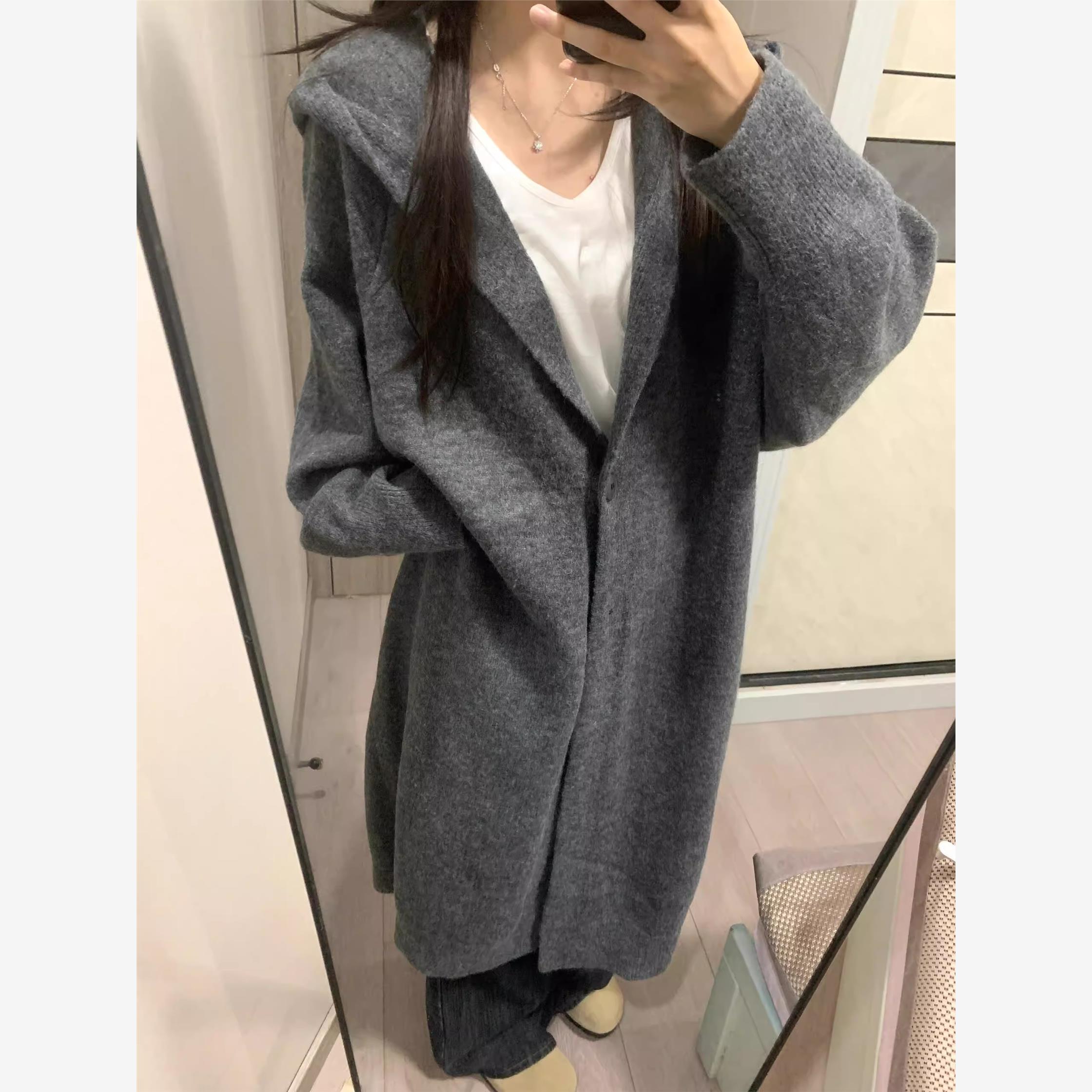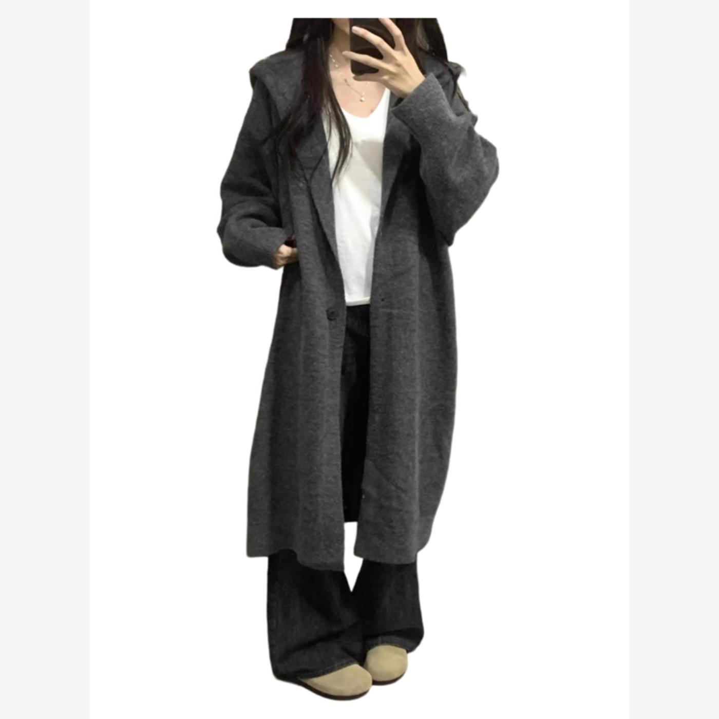 2025新款慵懒风中长款毛衣外套女秋冬季宽松显瘦复古针织开衫上衣