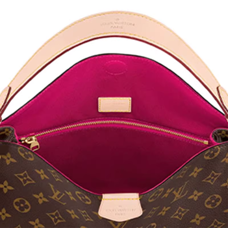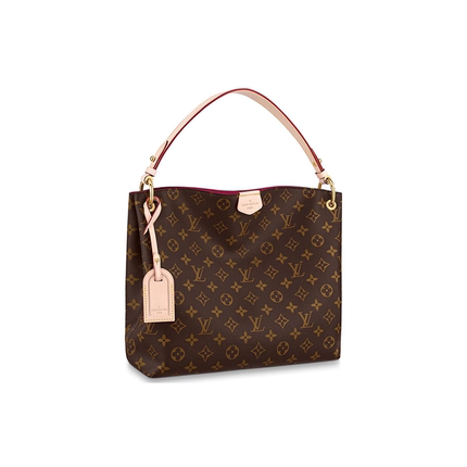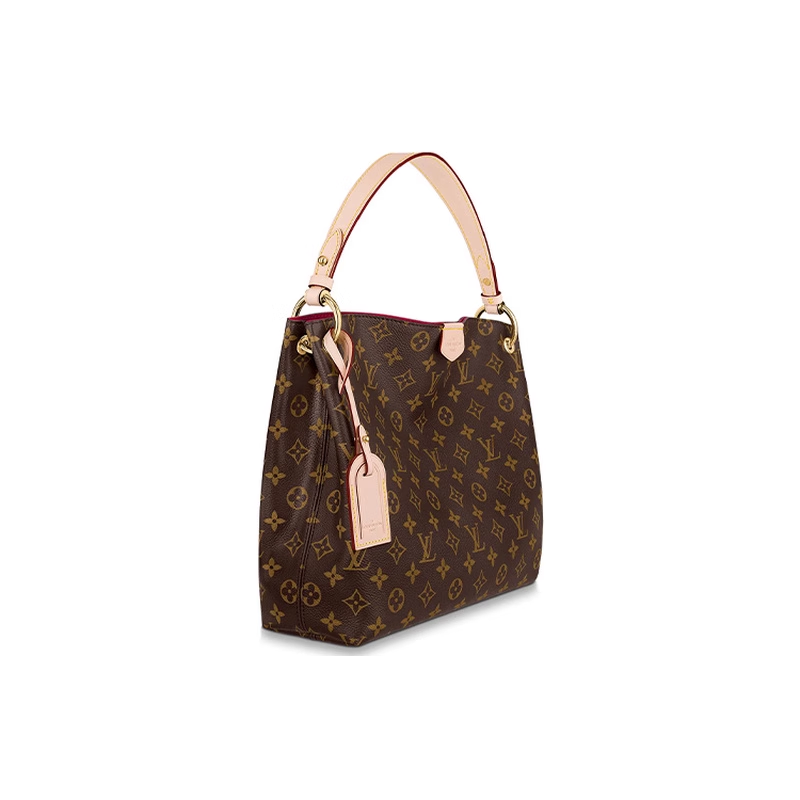 9.9/9.5新LV/路易威登GracefulPM涂层帆布拼牛皮革棕色小号手提包