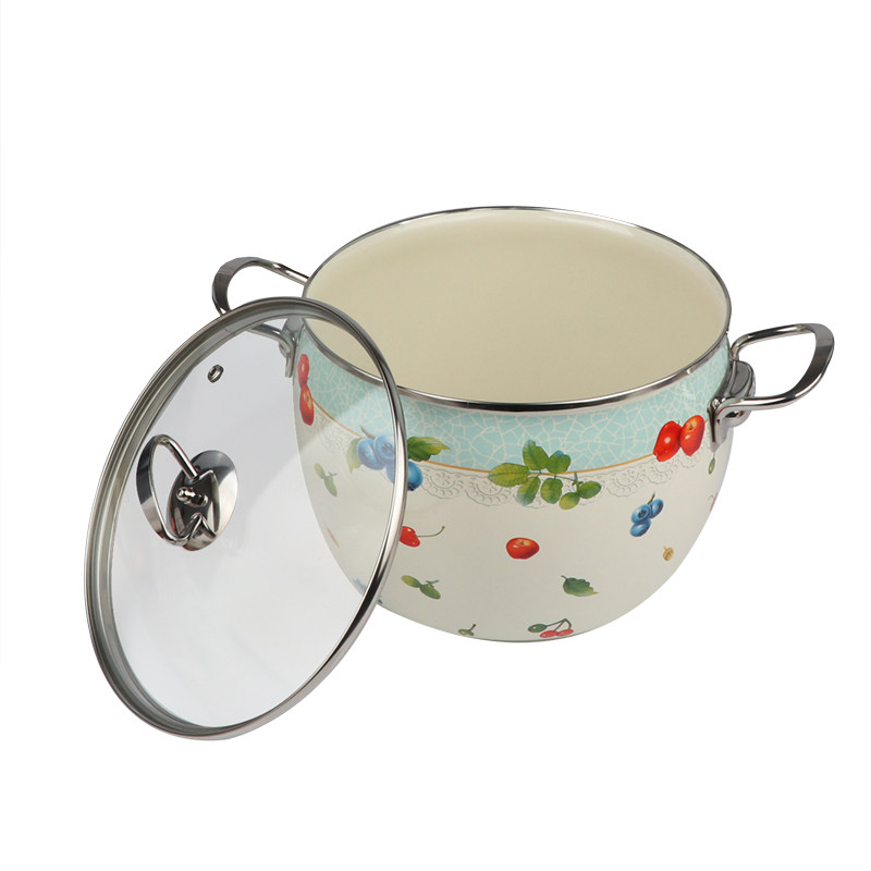 特厚珐琅搪瓷汤锅双耳搪瓷锅时尚彩色炖锅加深锅搪瓷高锅家用汤煲
