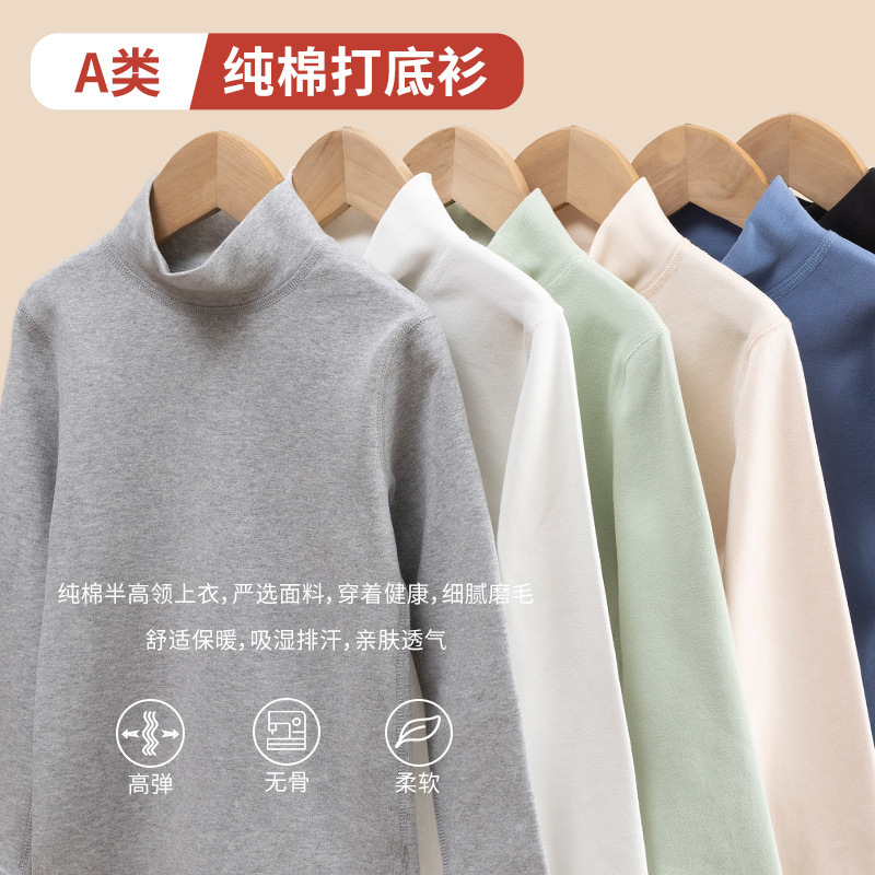 儿童纯棉打底衫半高领春秋男童秋衣单件上衣女童长袖t恤宝宝秋冬