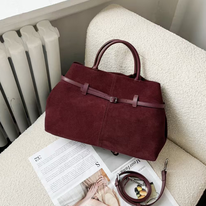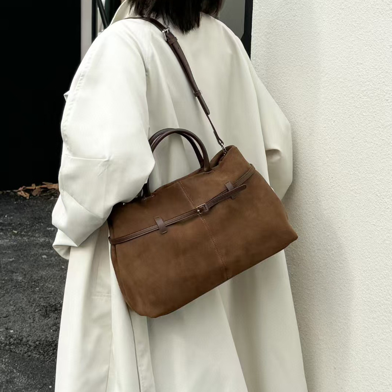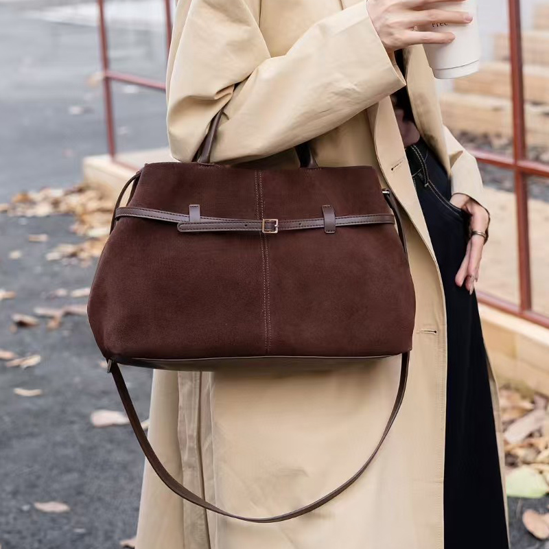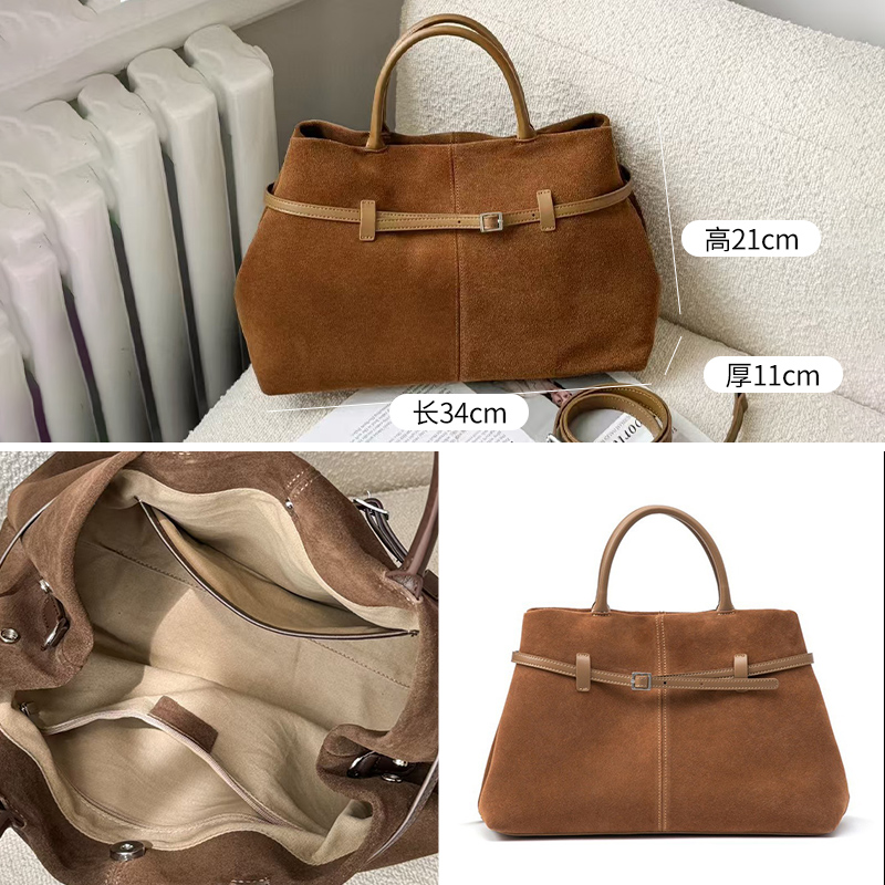 时尚一字皮带扣大容量真皮手提托特包磨砂牛皮通勤公文包斜挎女包