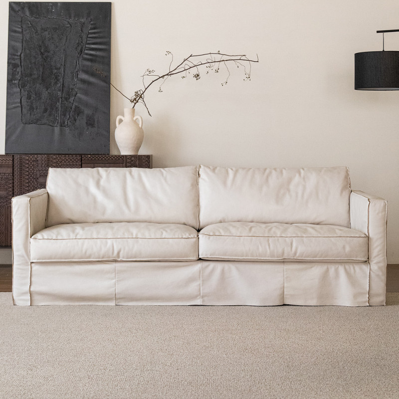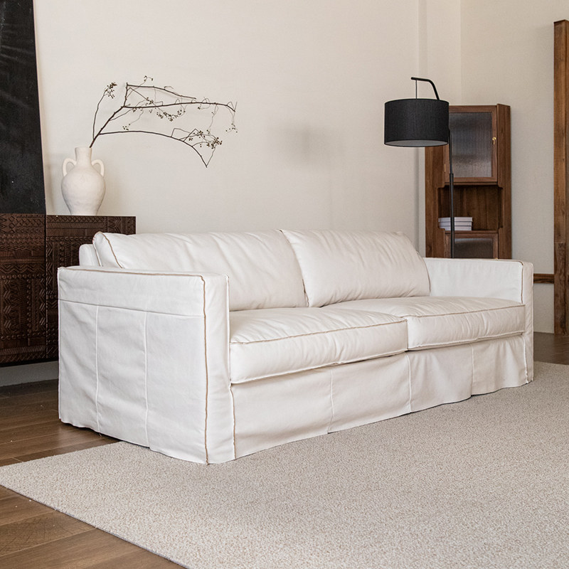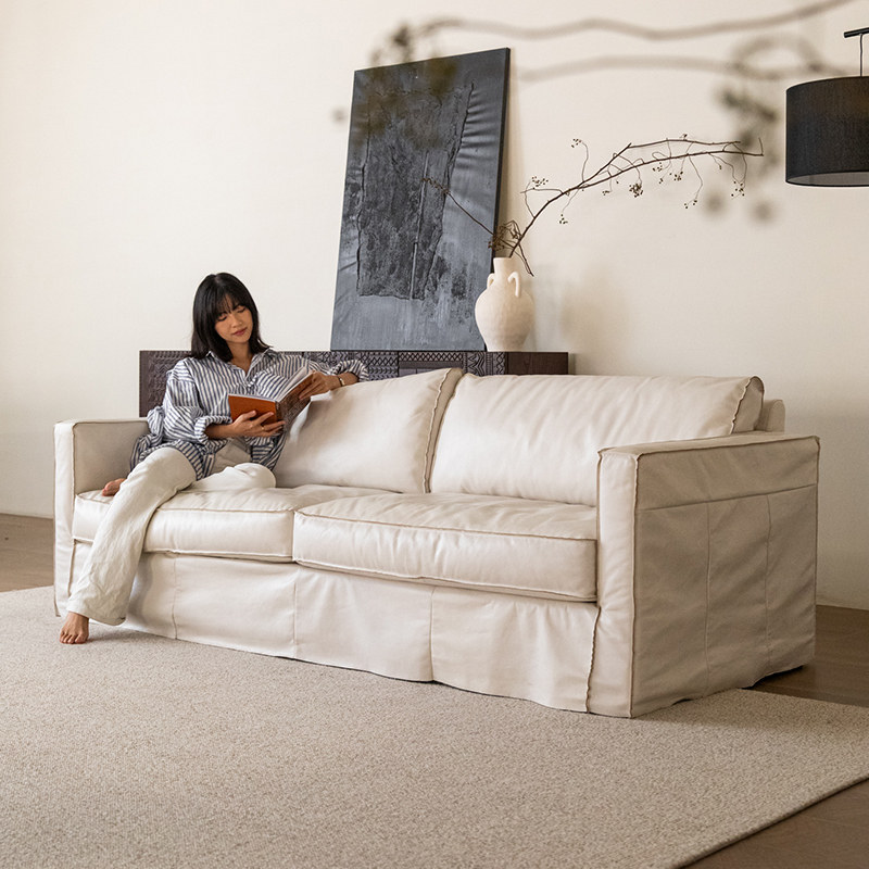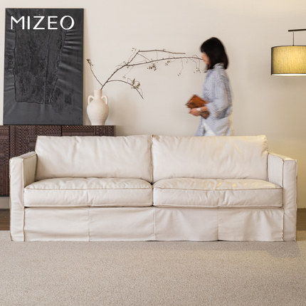 MIZEO 米卓/法式奶油全真皮艺沙发中古风直排小户型客厅白色沙发
