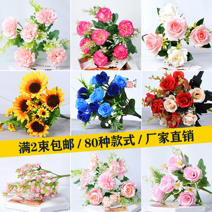 单支假花装饰客厅仿真花摆设塑料小花束摆件插花栅栏花向日葵婚庆
