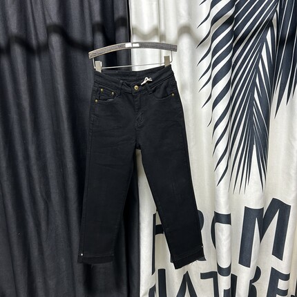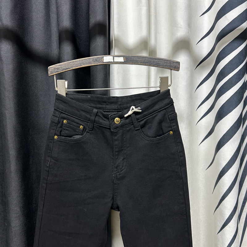 黑色高腰显瘦加绒九分烟管牛仔裤